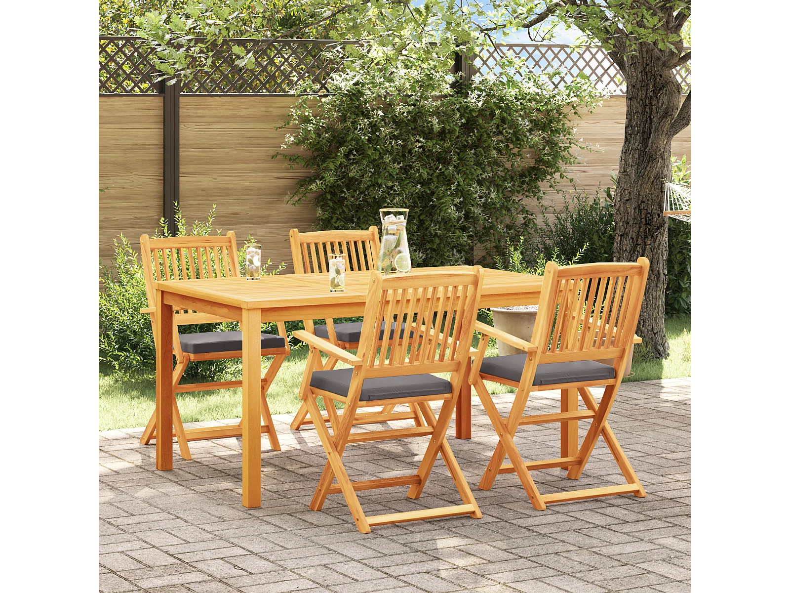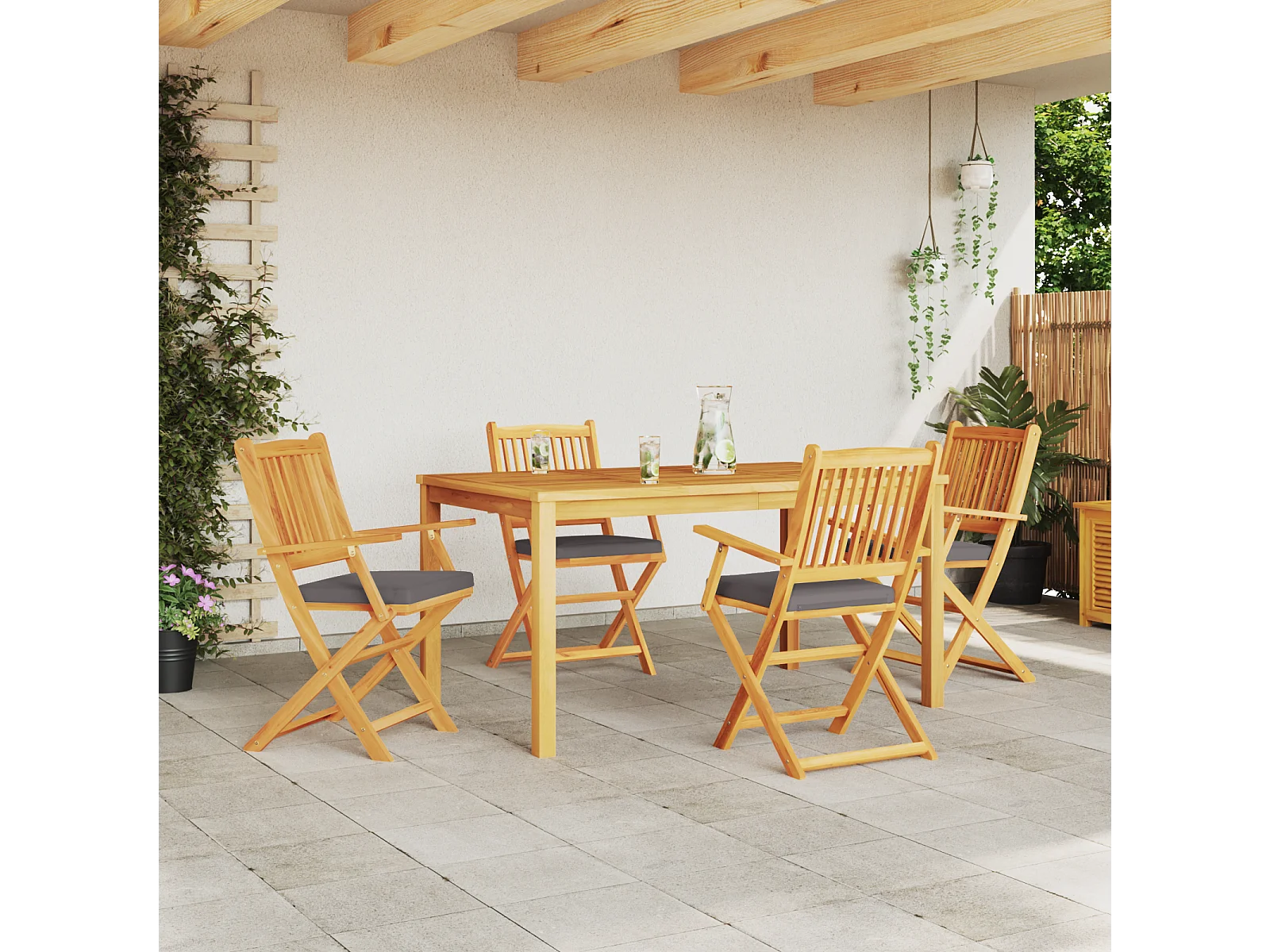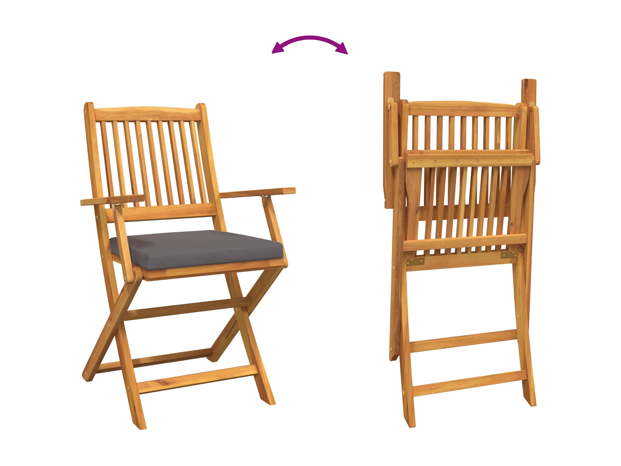 Chaises de jardin pliantes avec coussin gris 4pcs en bois d'acacia massif
