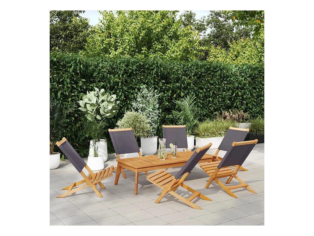 Chaises de jardin pliantes lot de 6 tissu et bois massif