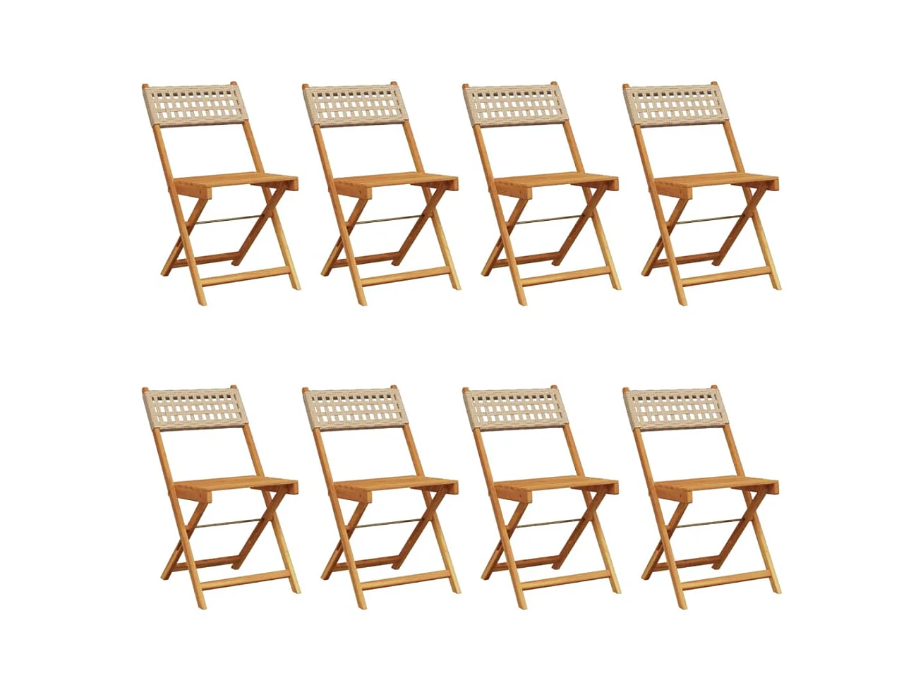 Chaises de jardin pliantes lot de 8 beige rotin et bois massif