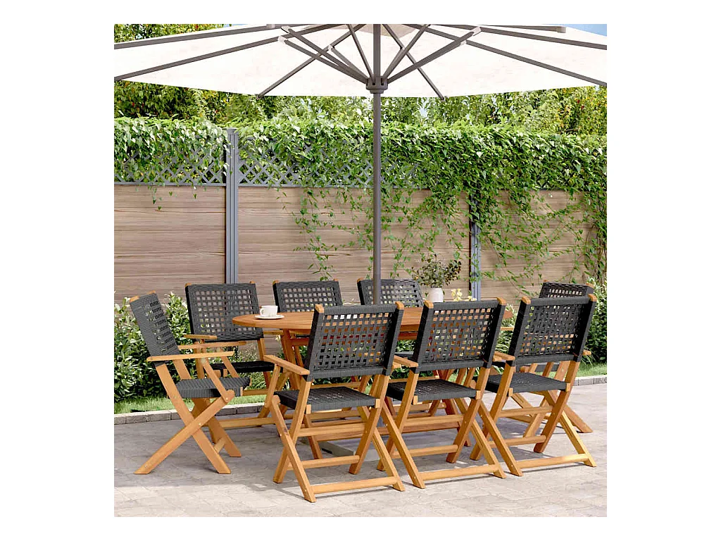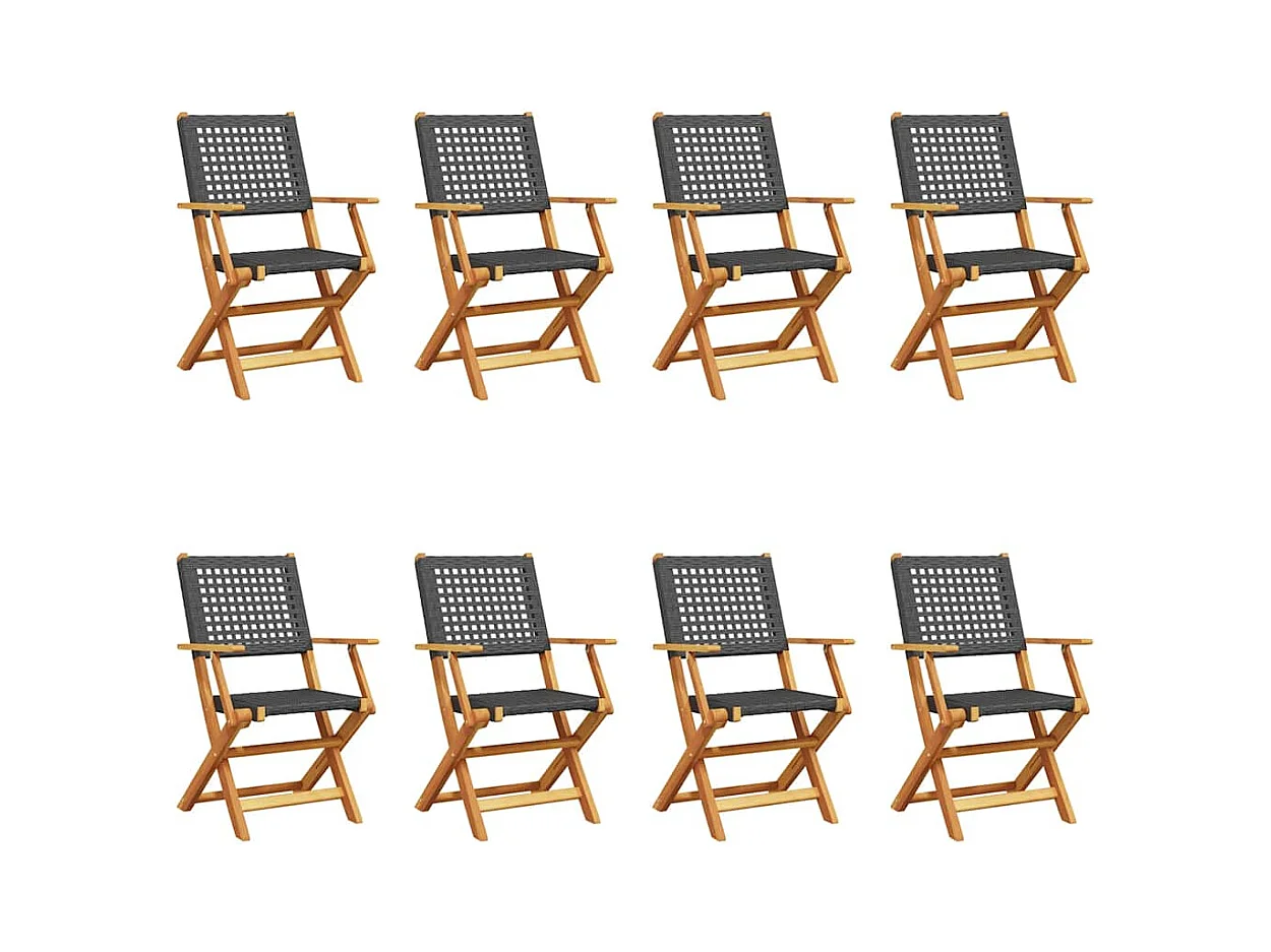 Chaises de jardin pliantes lot de 8 noir poly rotin bois massif