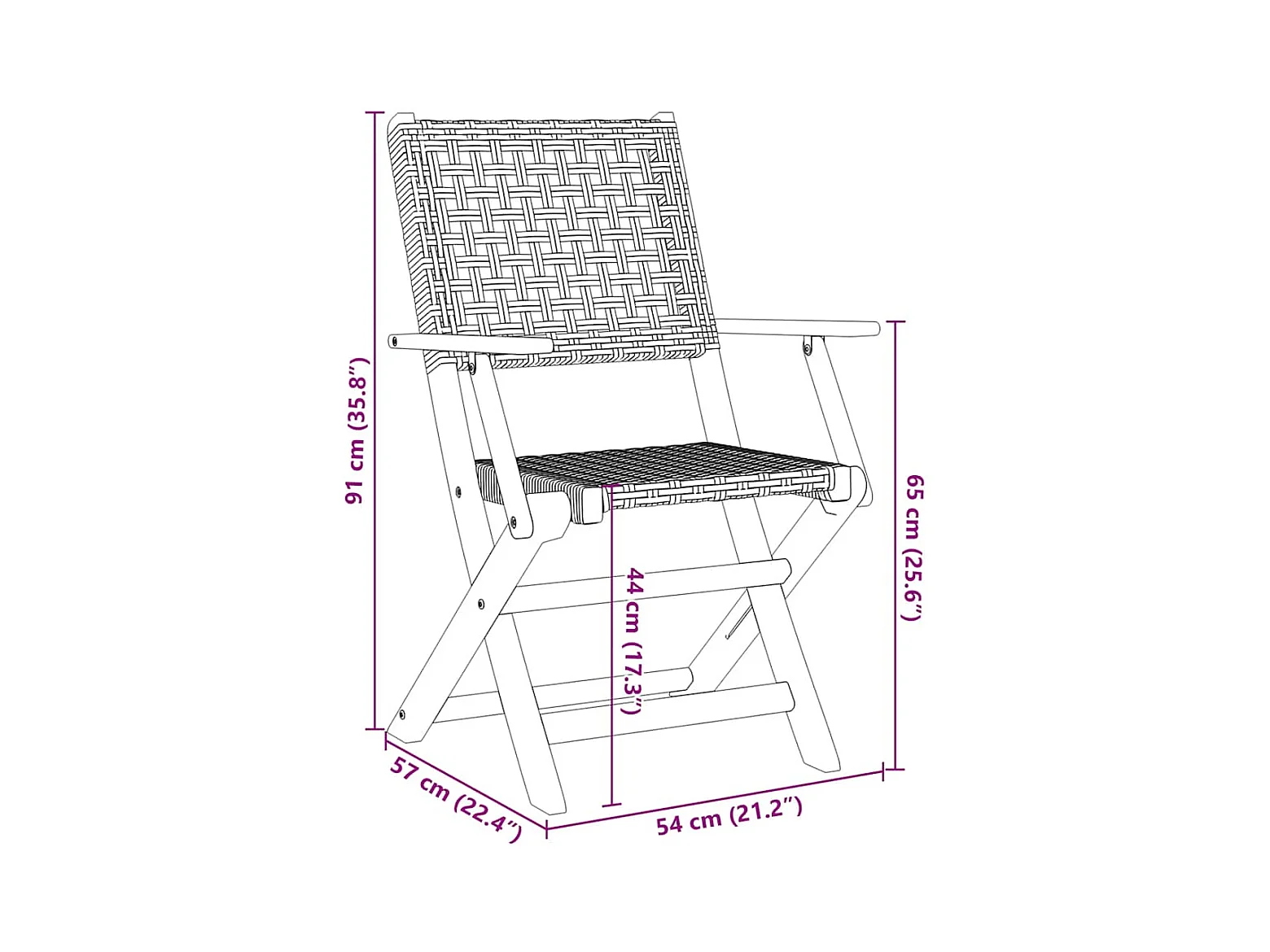 Chaises de jardin pliantes lot de 4 noir poly rotin bois massif