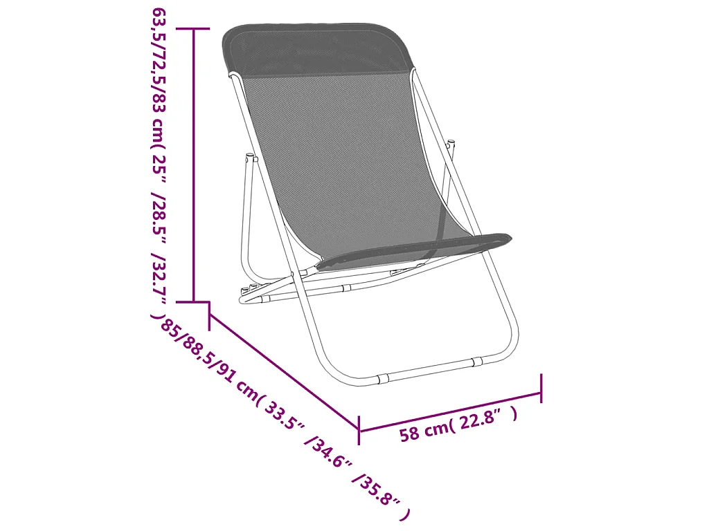 Chaises plage pliantes lot de 2 textilène acier enduit poudre