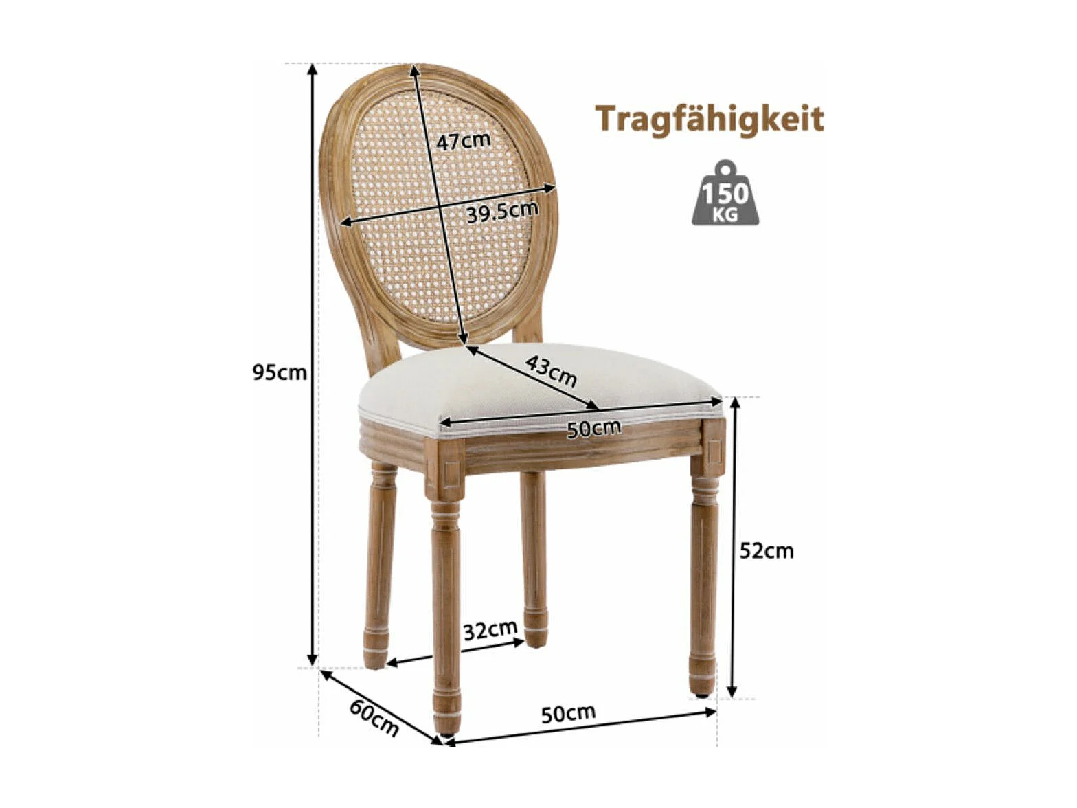 Chaises de salle à manger 4 pièces avec dossier en rotin