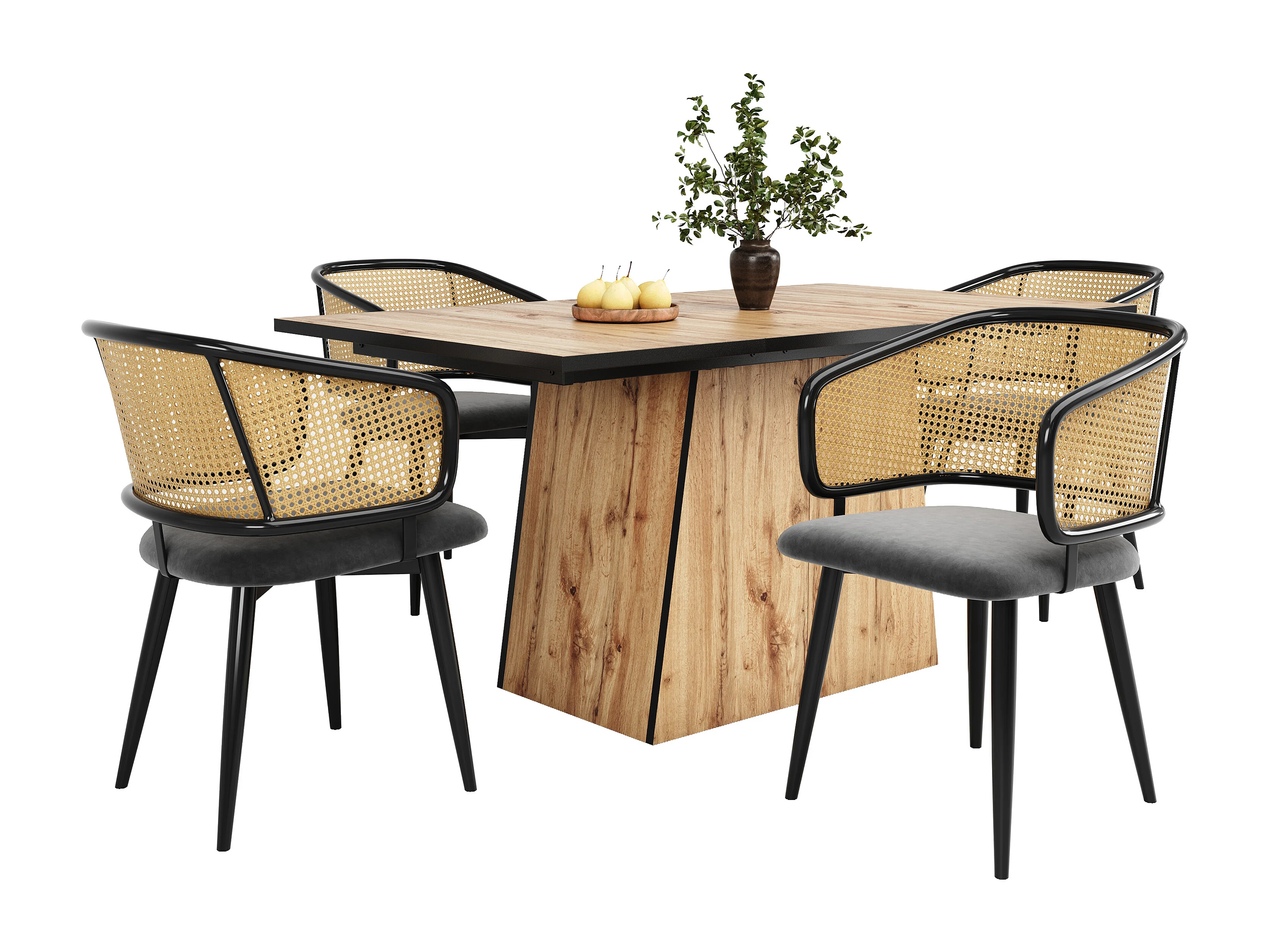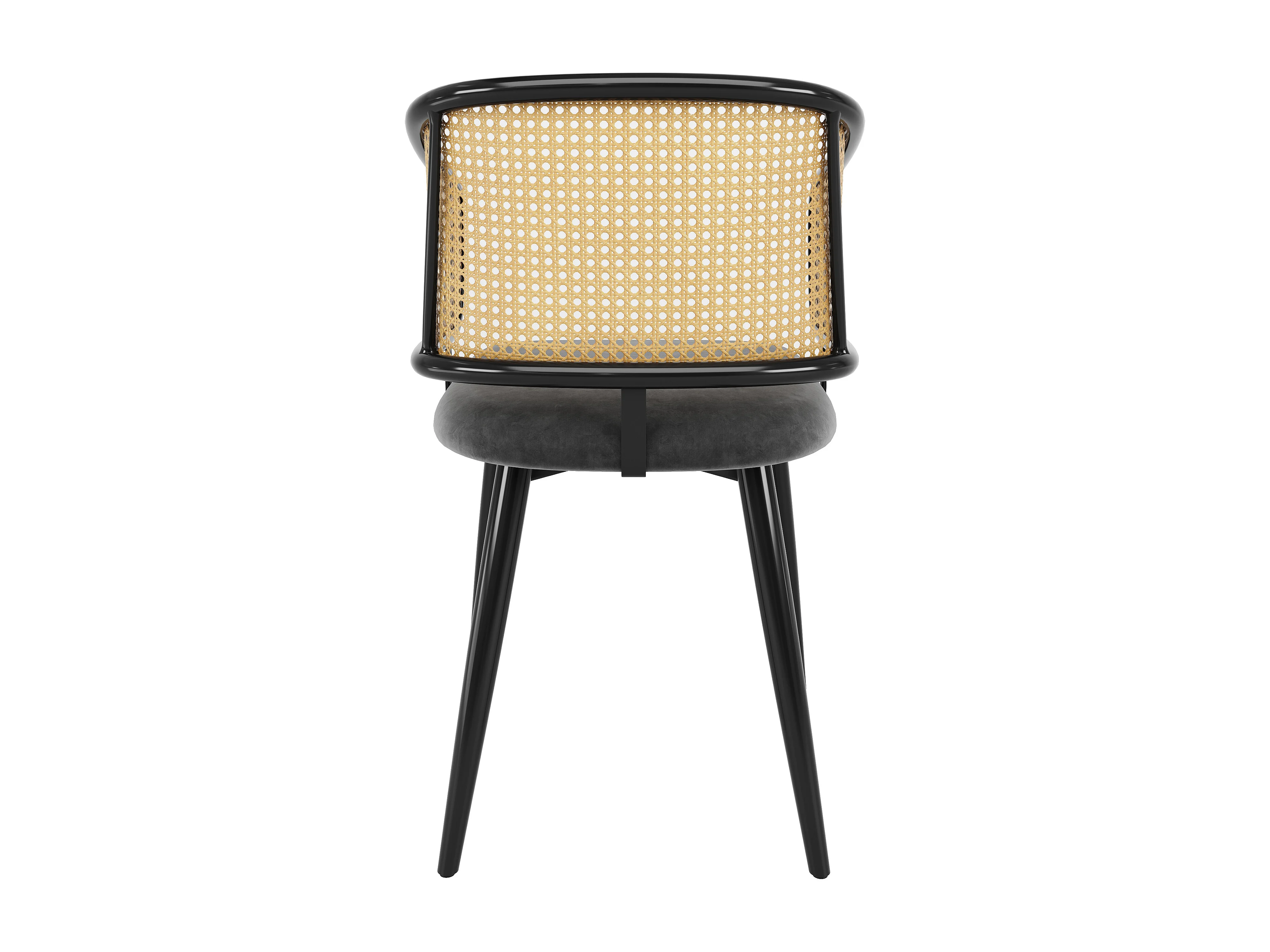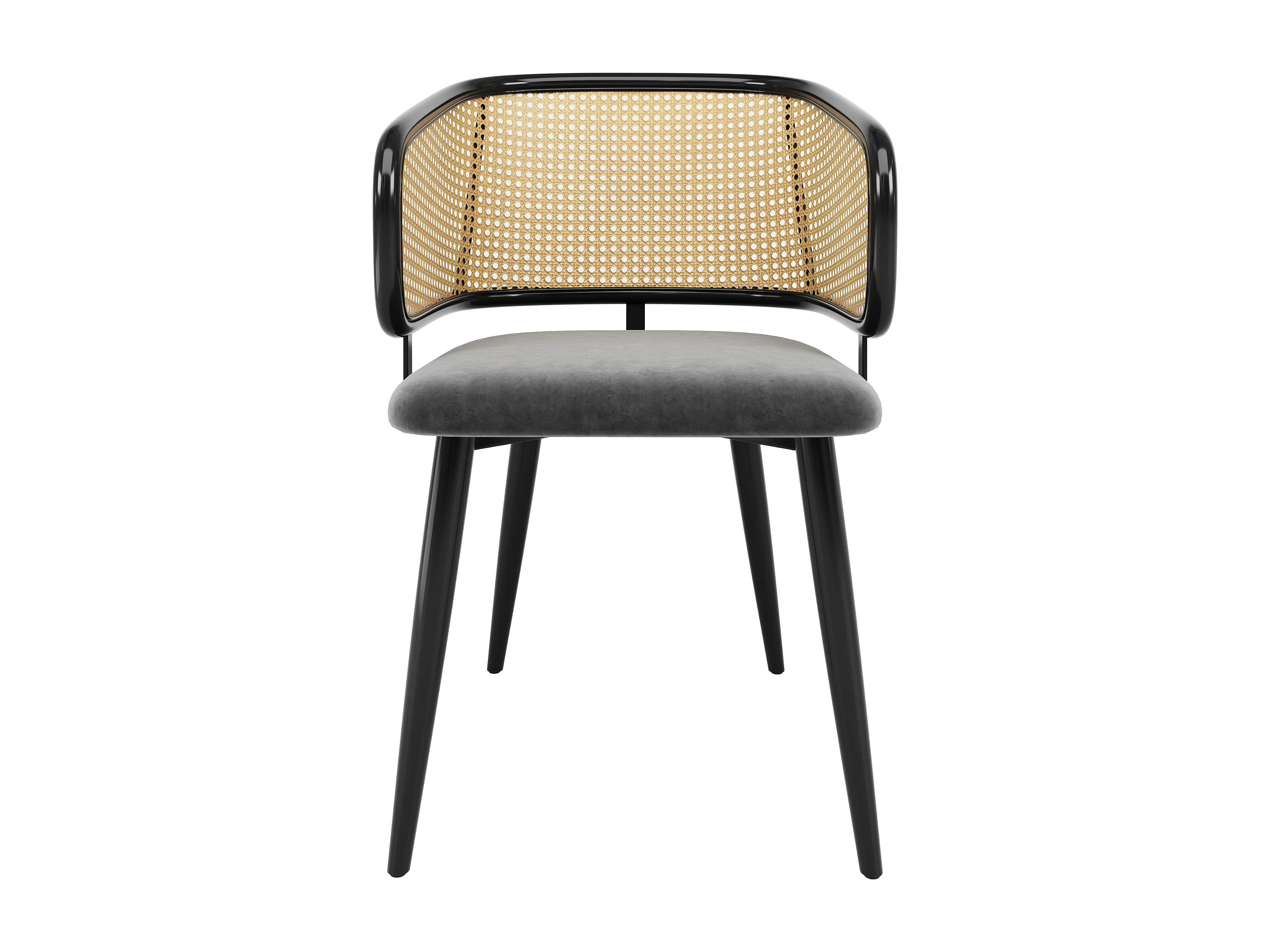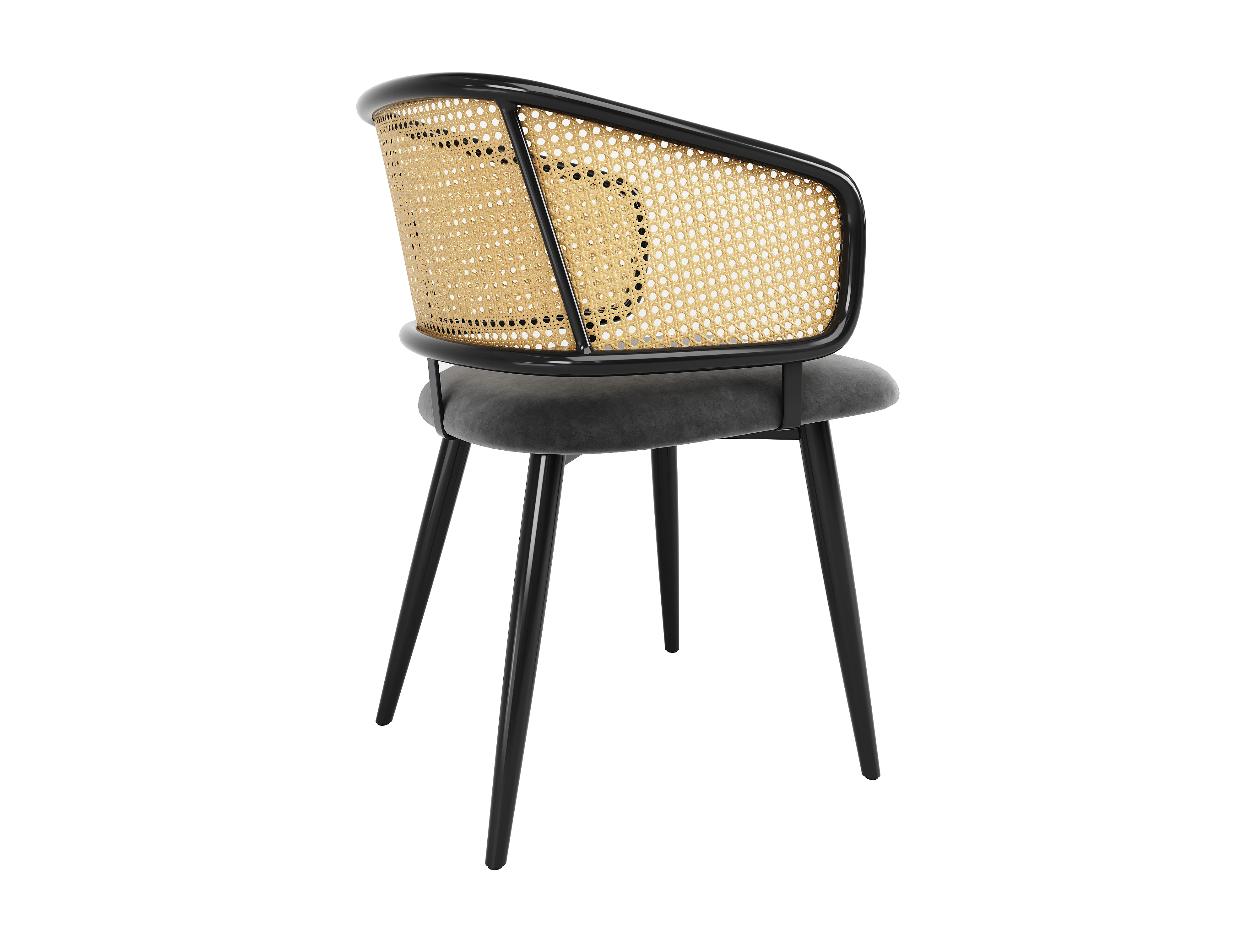 Chaises de salle à manger avec dossier en rotin (4 pièces), coussin en velours, design moderne, pieds en métal, gris (47x51x79 cm)