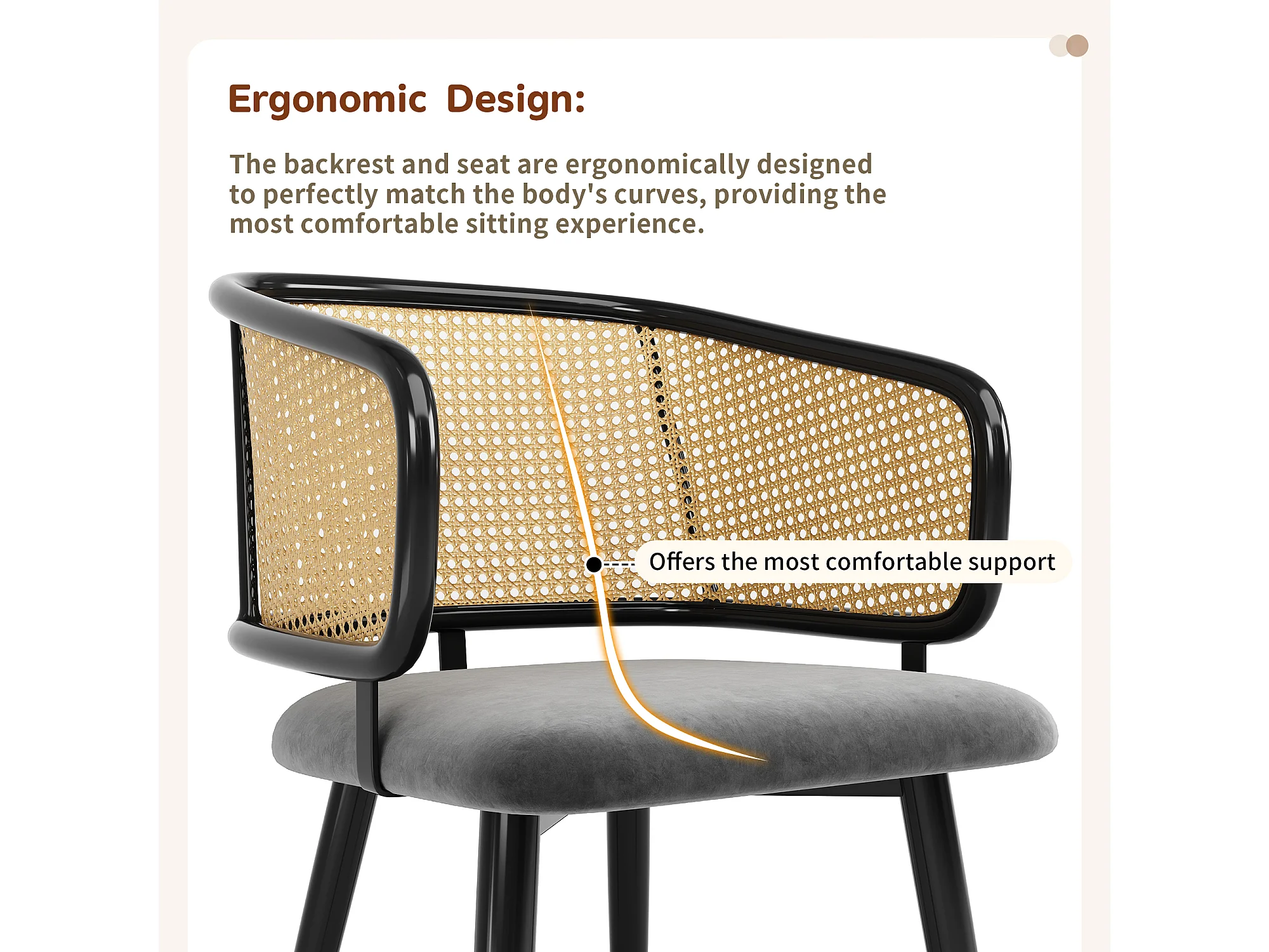 Chaises de salle à manger avec dossier en rotin (6 pièces), coussin en velours, design moderne, pieds en métal, gris (47x51x79 cm)