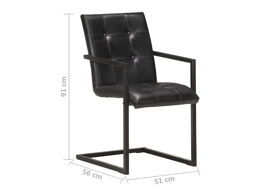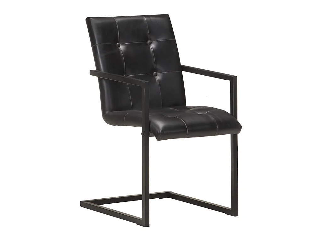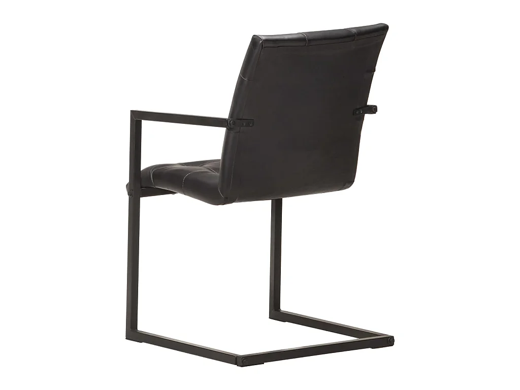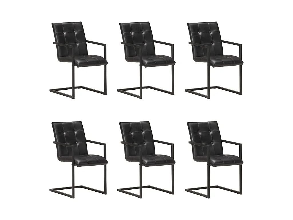 Chaises de salle à manger cantilever 6 pcs Noir Cuir véritable