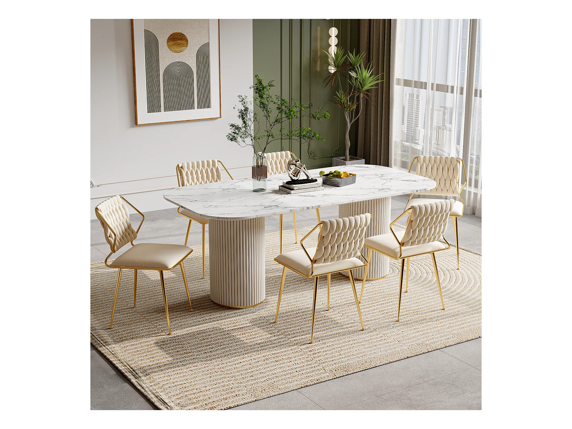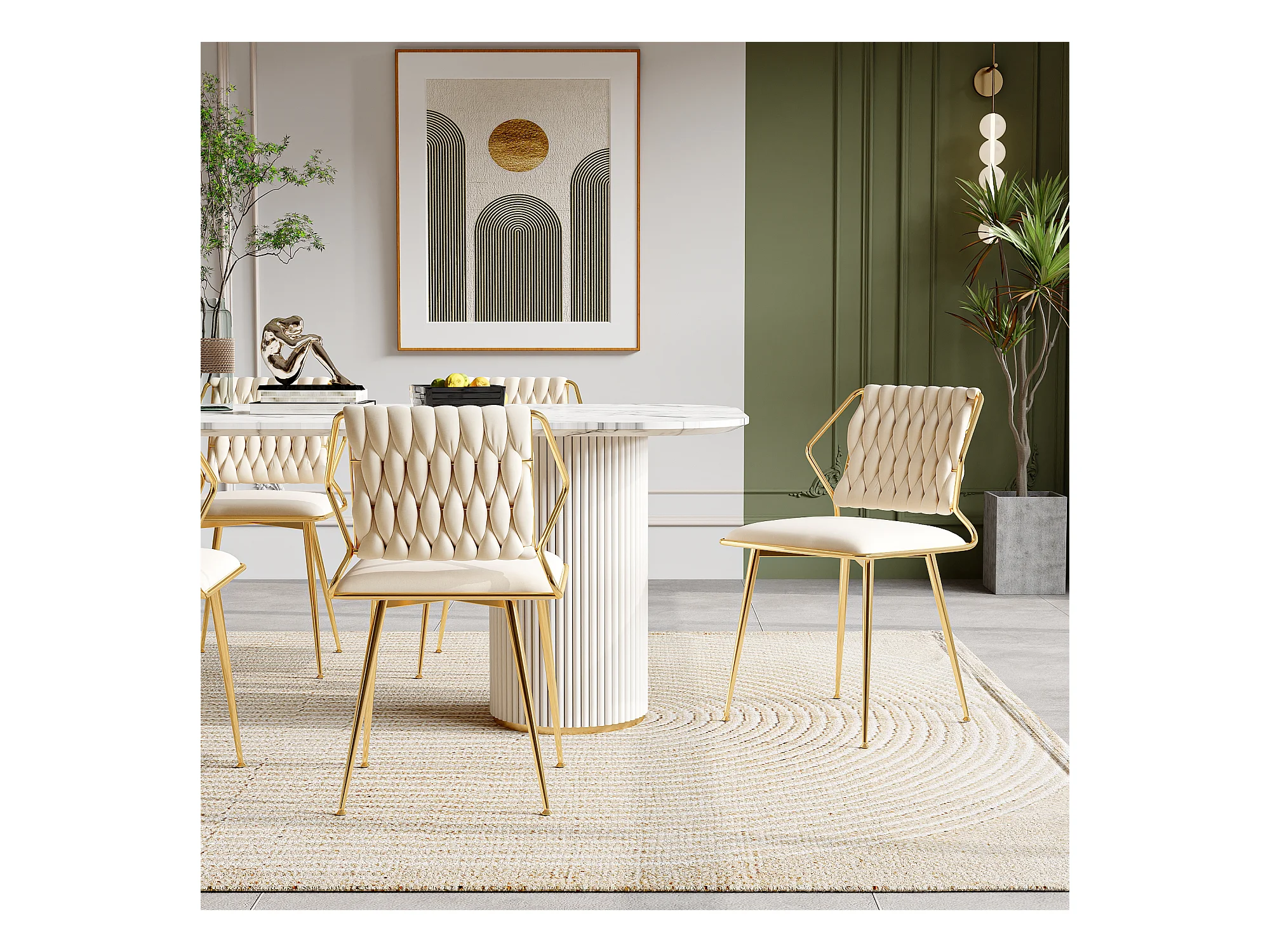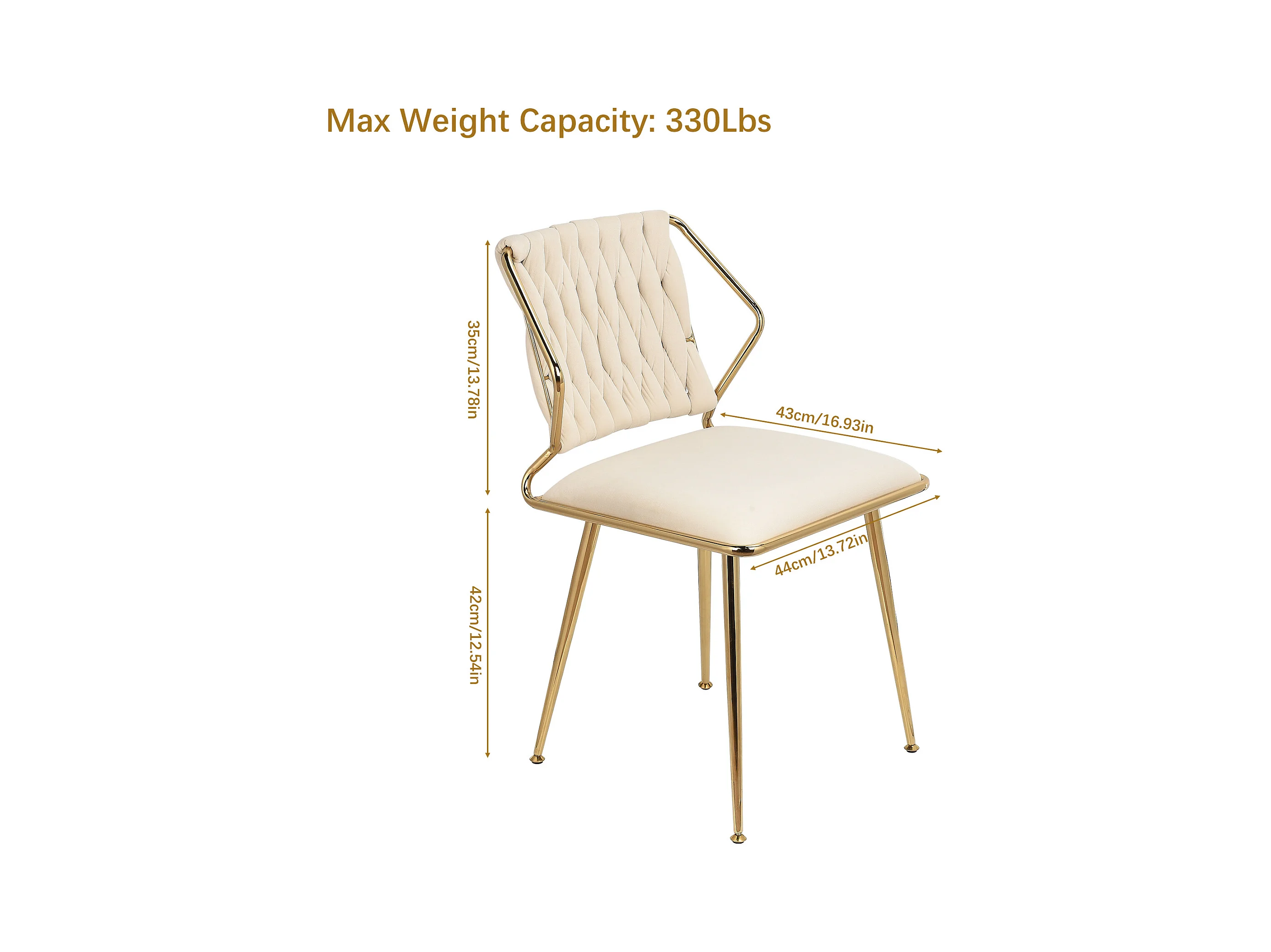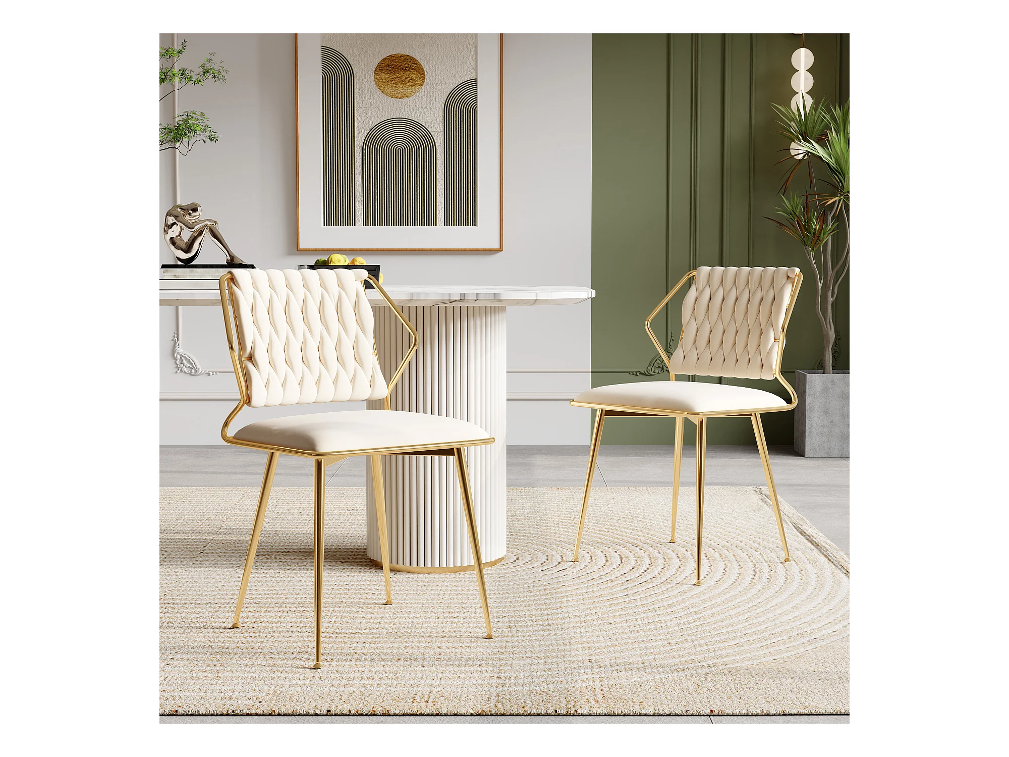 Lot de 2 chaises en velours et métal - pour la Vanité de la Chambre de Cuisine - Beige