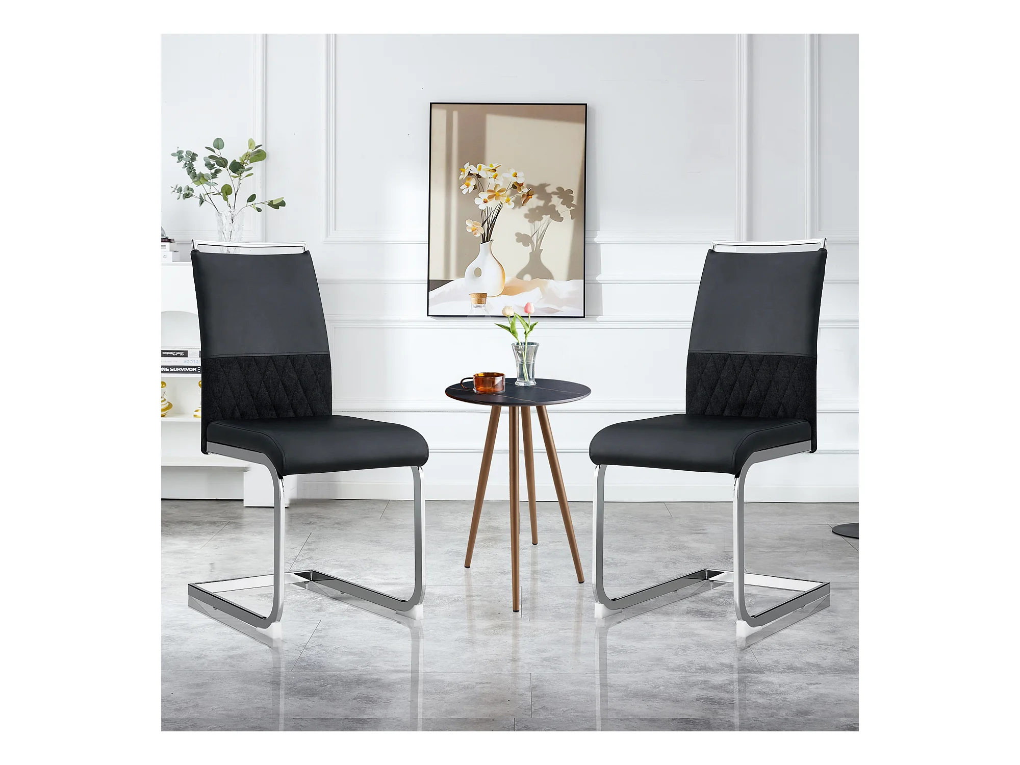 Chaises de salle à manger modernes, cuir synthétique, métal, noir (56x51x81 cm), lot de 2