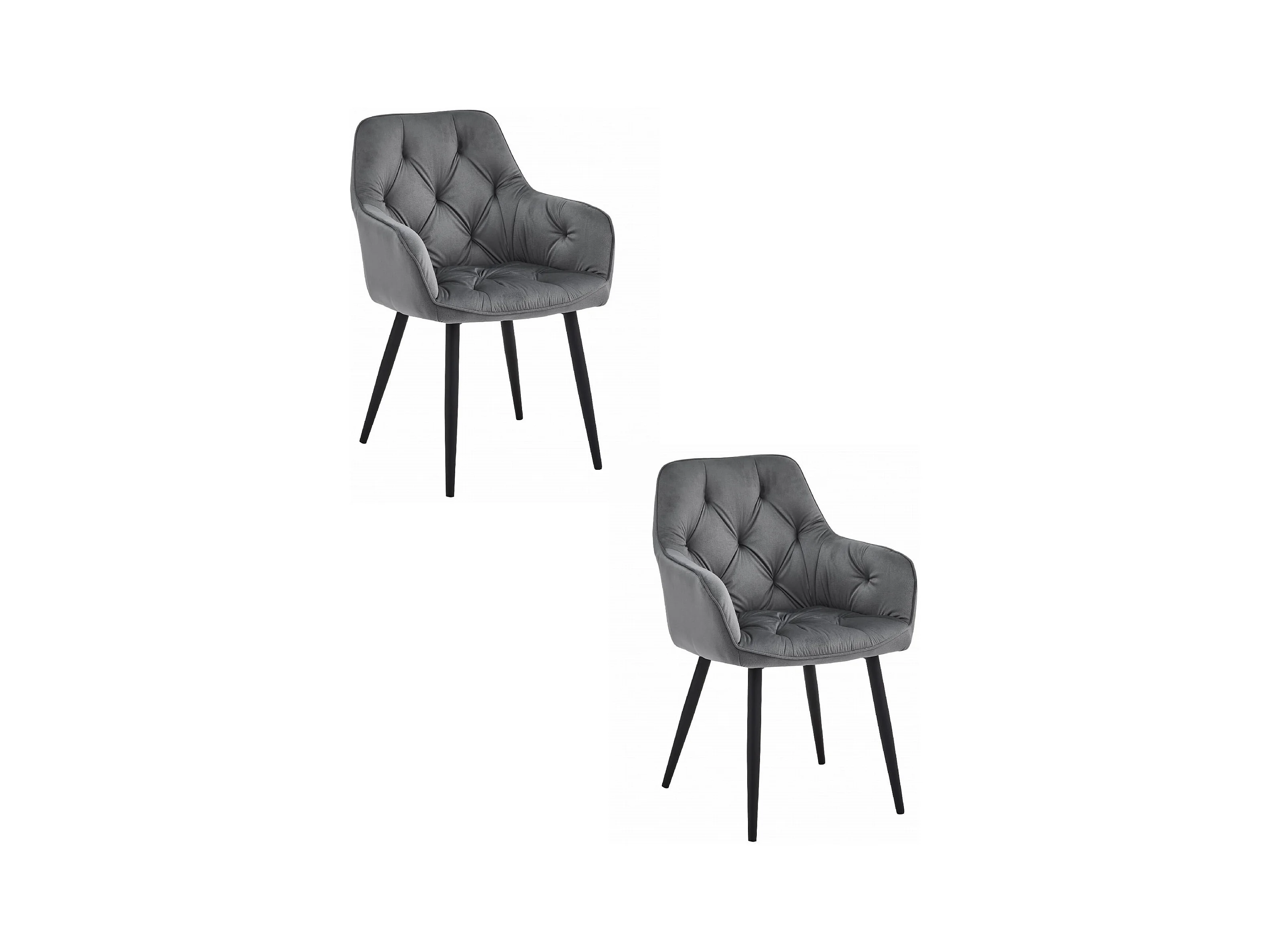 Chaises de salle à manger Valora LUKK – Velours gris foncé avec pieds noirs x 2
