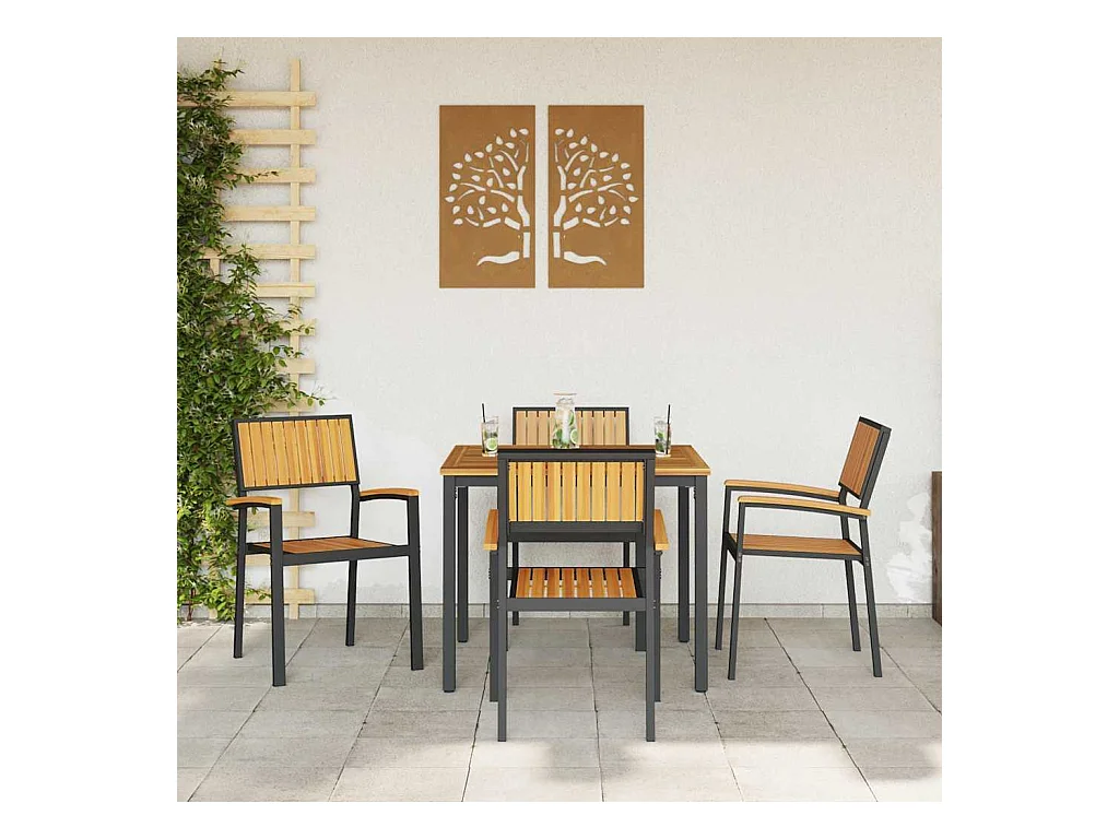 Chaises d'extérieur 4 pcs Empilables en Bois d'Acacia Noir et Métal
