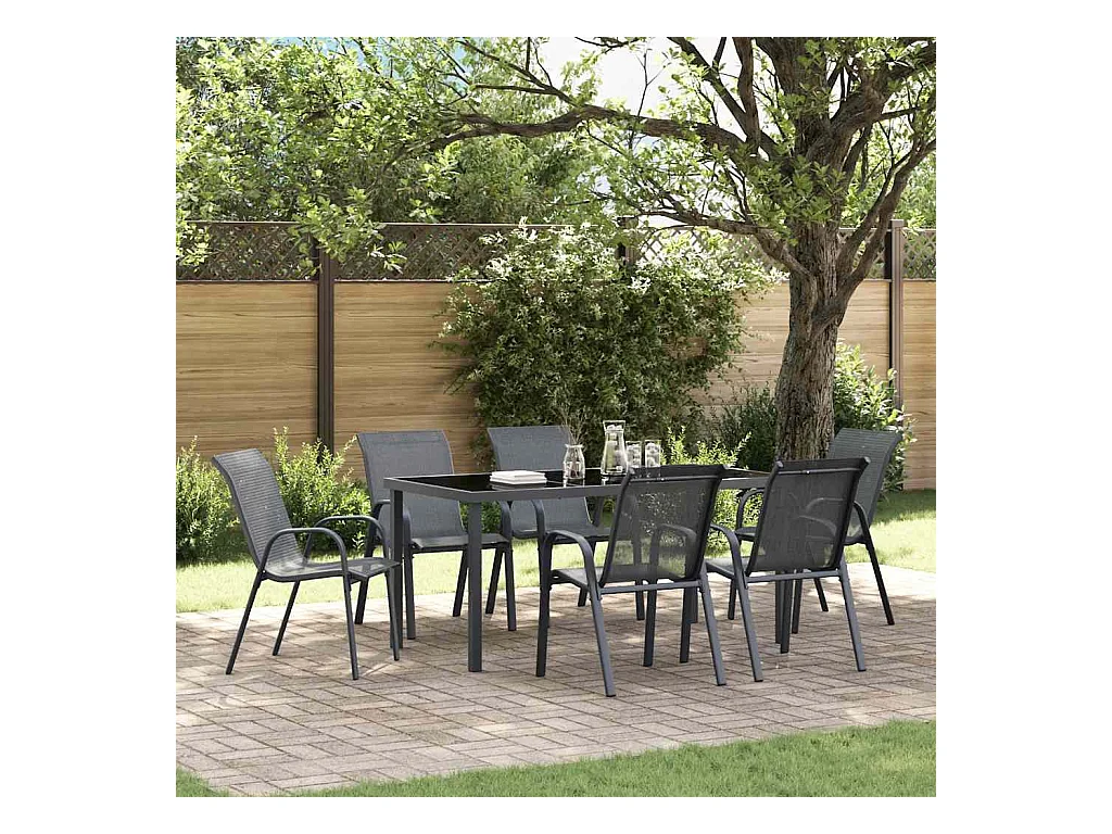 Chaises empilables de jardin lot de 6 Gris Tissu textilène