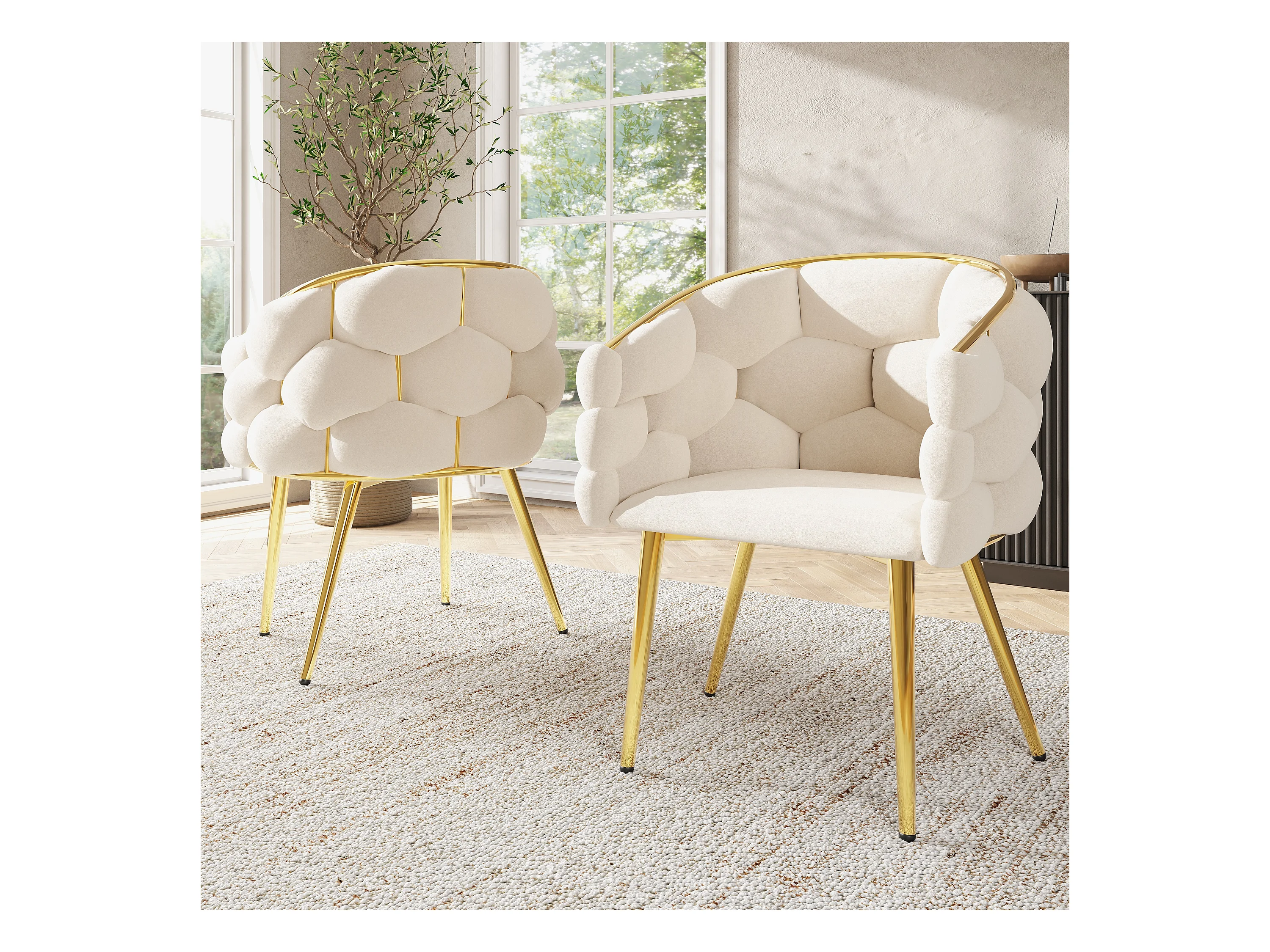 Lot de 2 chaises de salle à manger avec motif losange, fauteuil pivotant avec 4 pieds métalliques, en velours beige (L64.77 x l63.5 x H50.8 cm)
