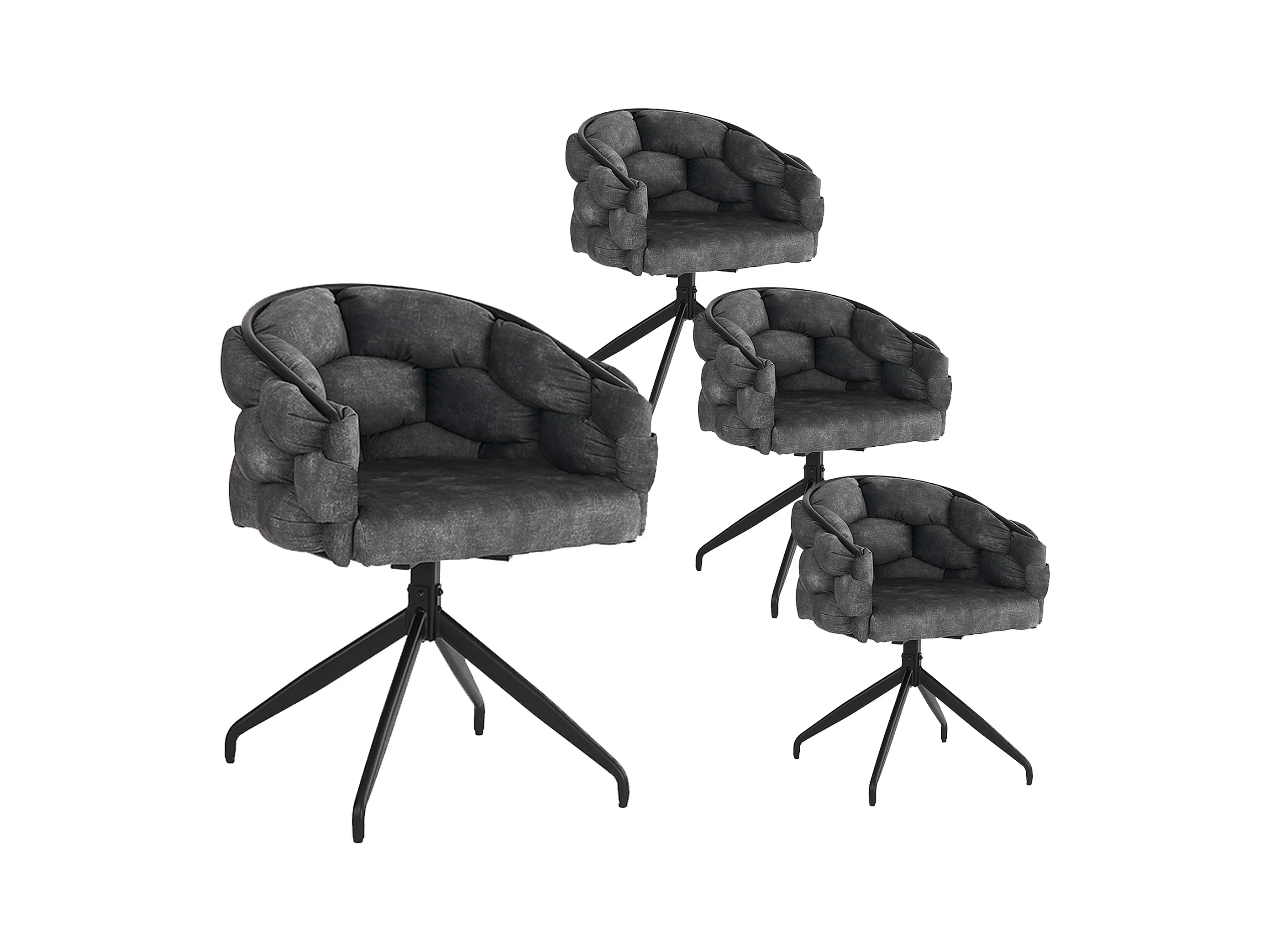 Chaises de salle à manger en velours de luxe, lot de 4, chaise pivotante, rotative à 360°, chaises de salle à manger avec dossier, ergonomiques, grises
