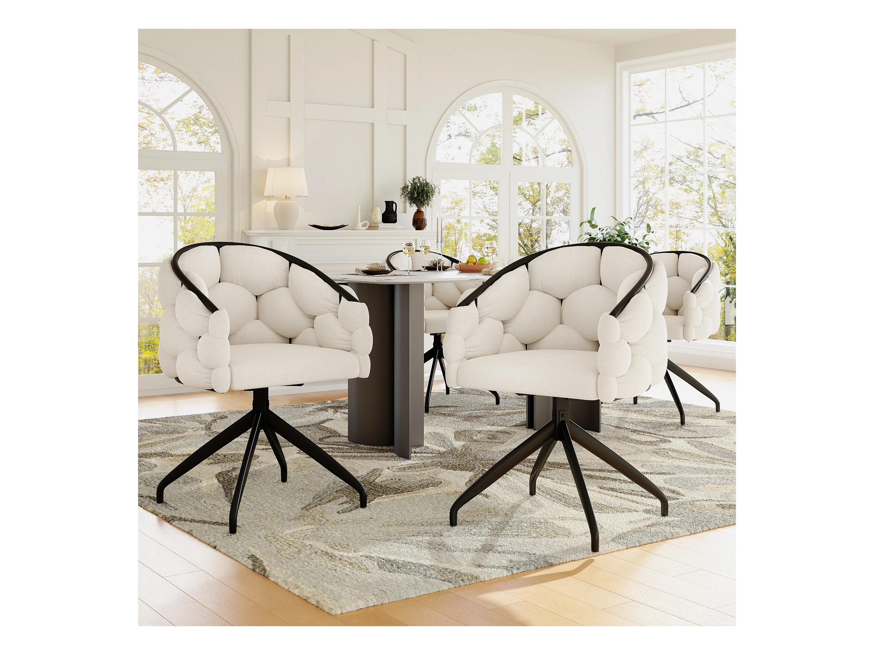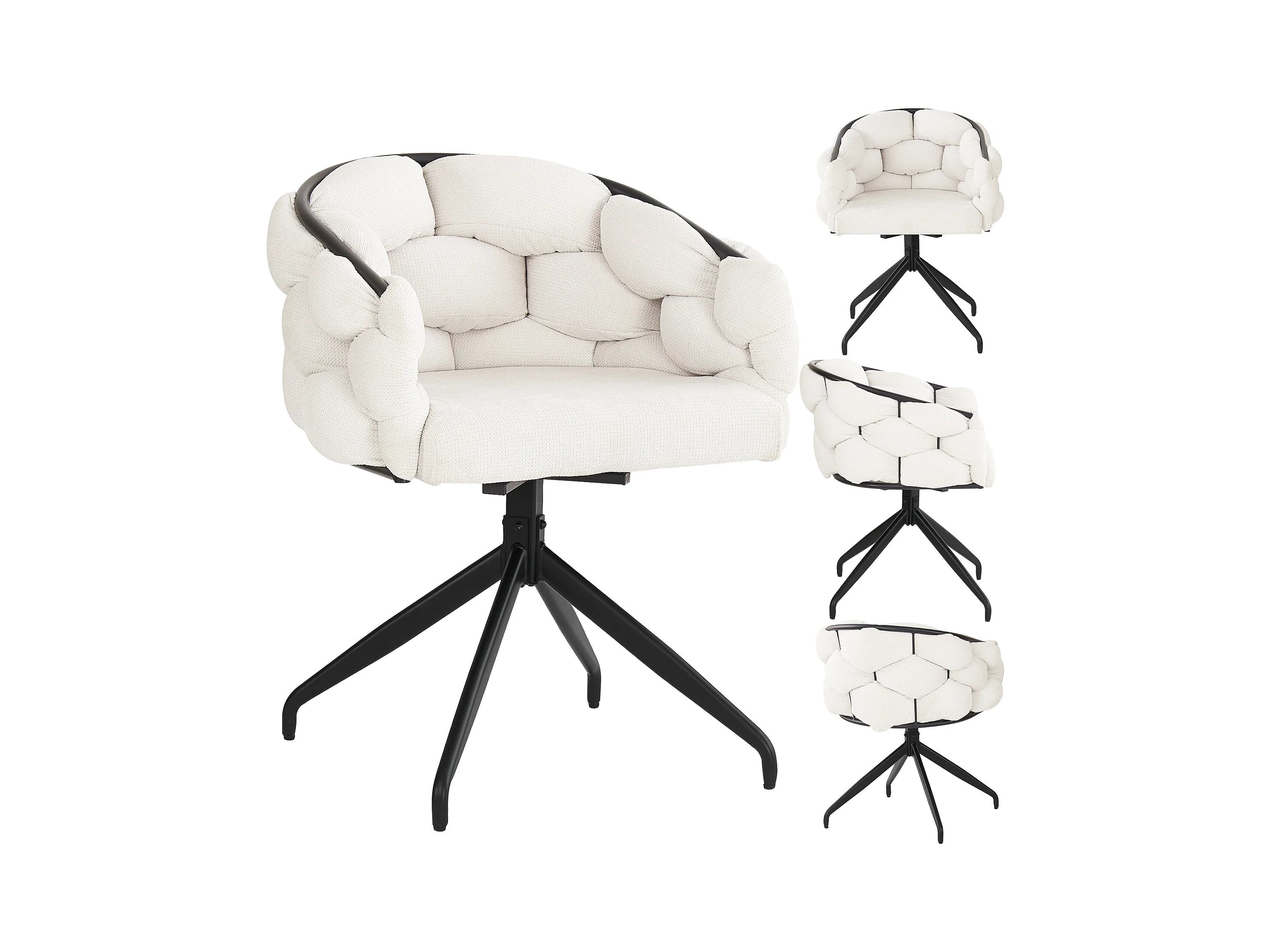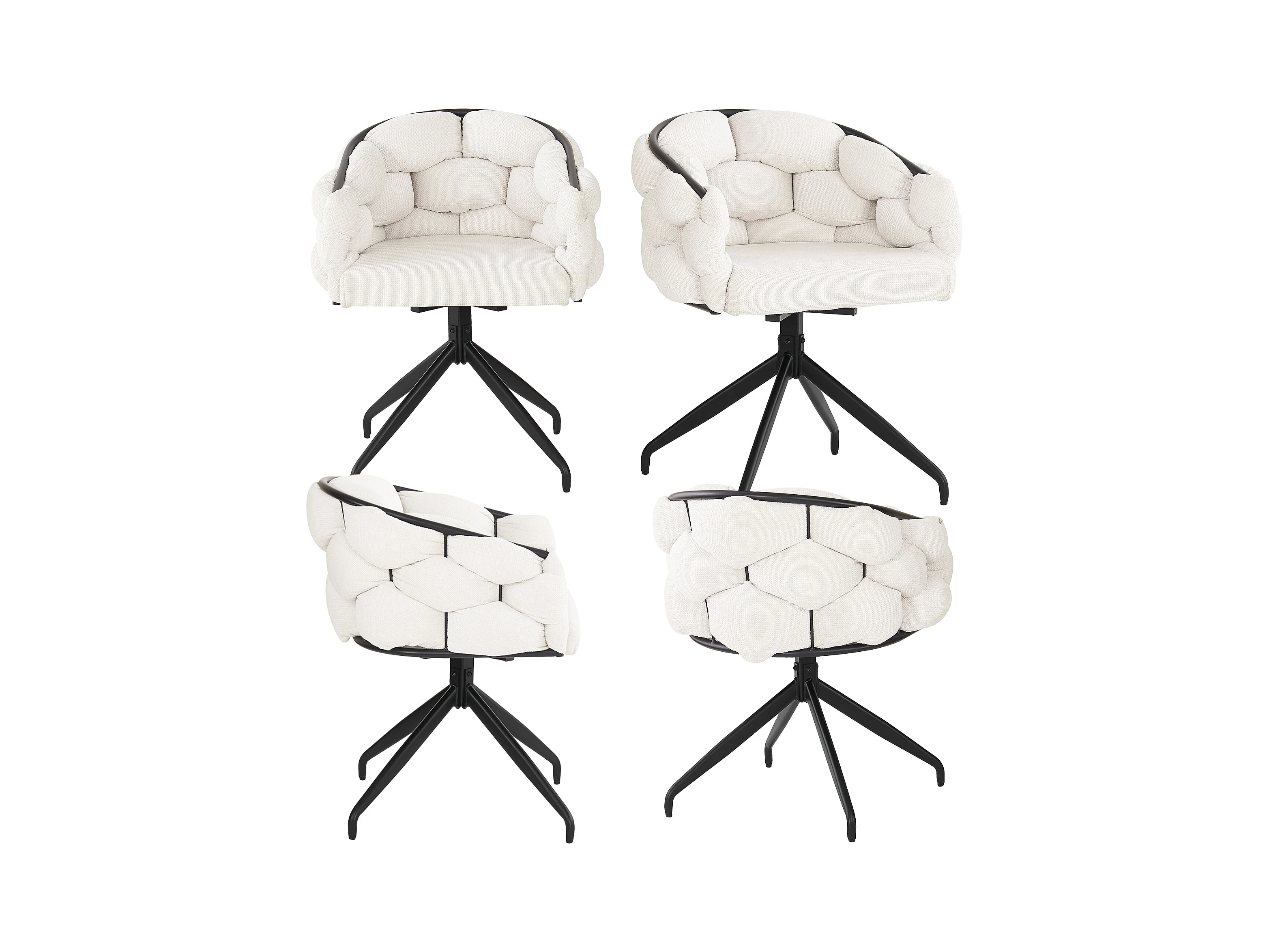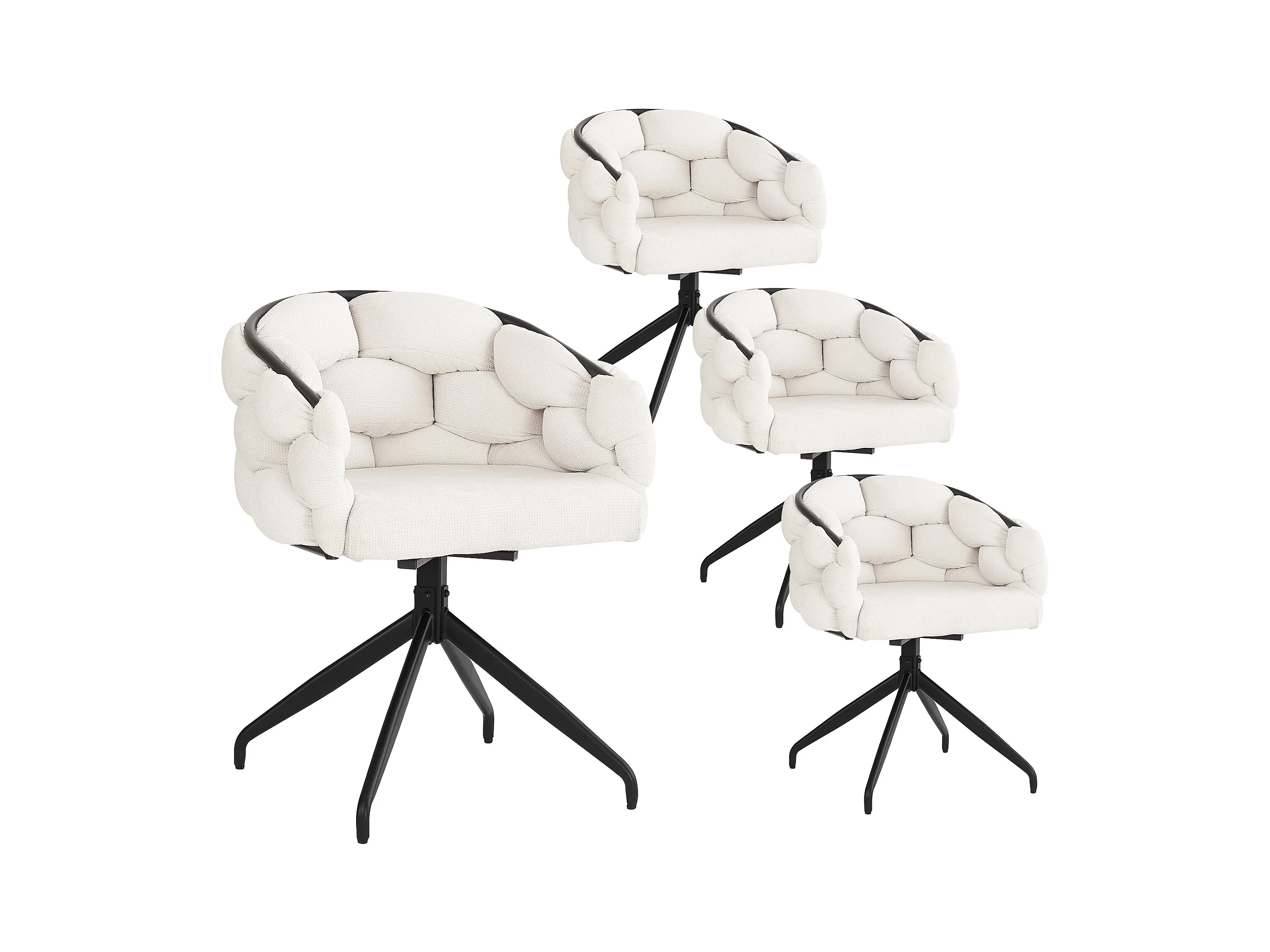 Chaises en velours luxueuses (4 pièces), pivotantes 360°, design moderne, métal doré, beige (45x44x77.5 cm)
