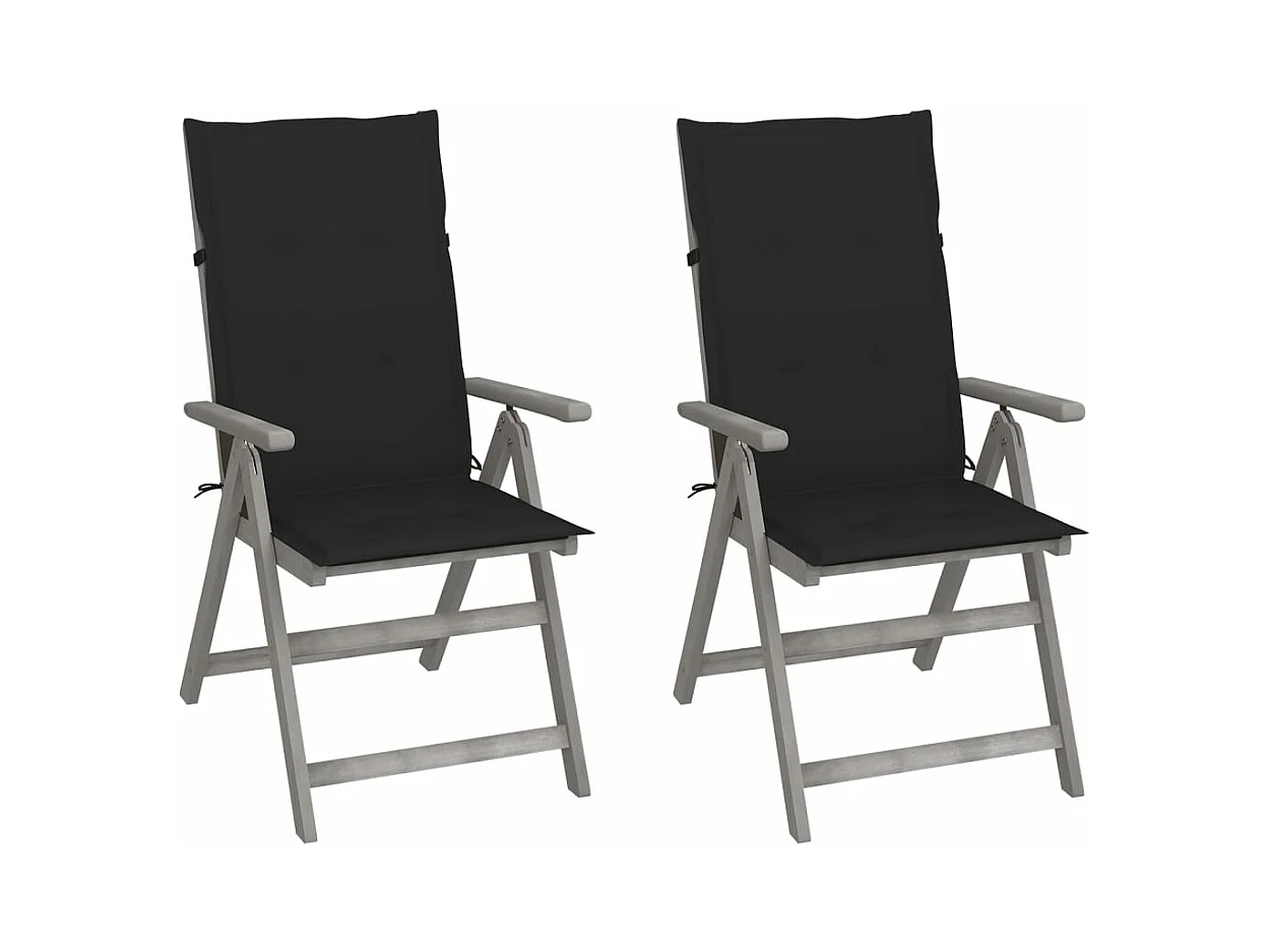 Chaises inclinables de jardin 2 pcs avec coussins Bois d'acacia