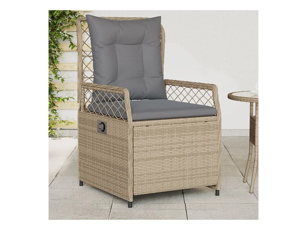 Chaise inclinable de jardin avec coussins beige résine tressée