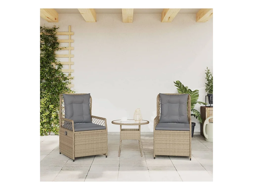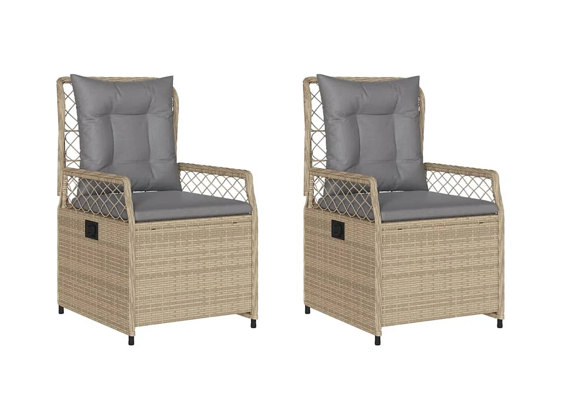 Chaises inclinables de jardin lot de 2 et coussins beige rotin