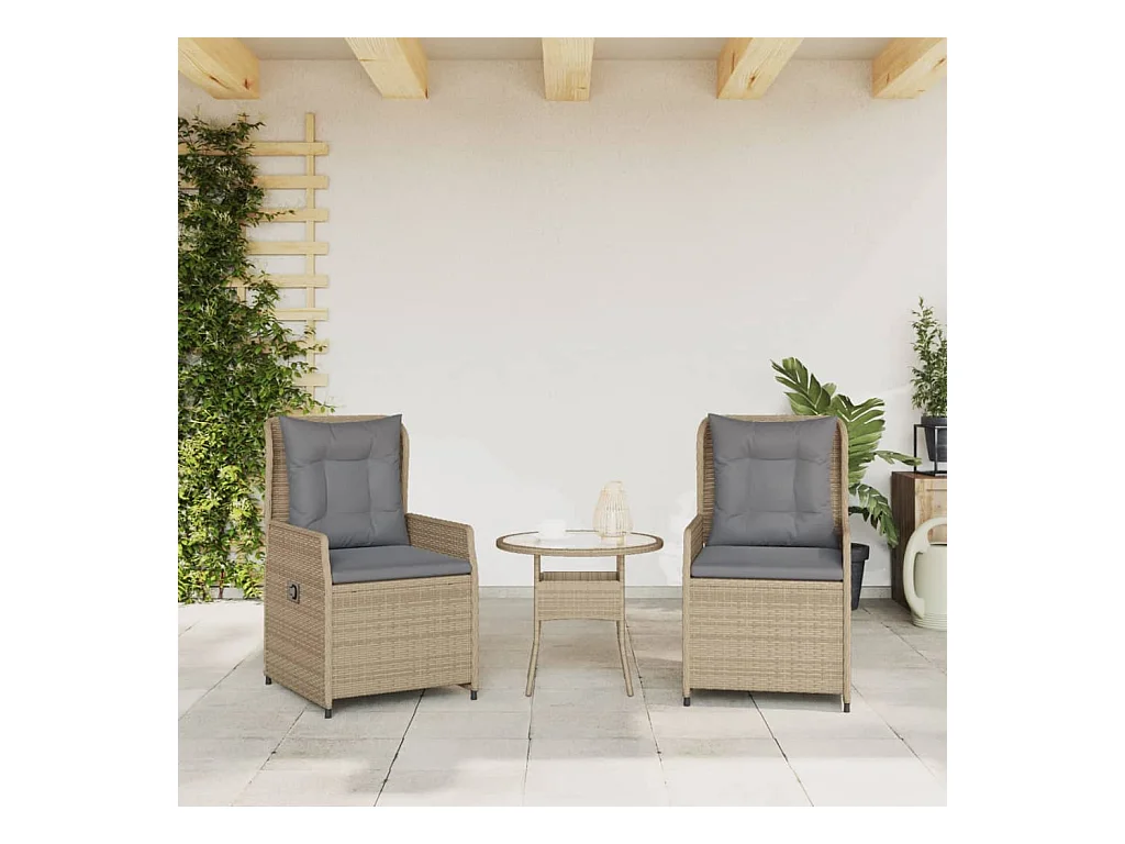 Chaises inclinables de jardin lot de 2 avec table beige rotin