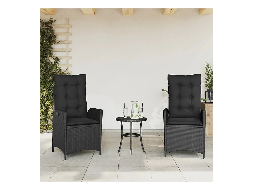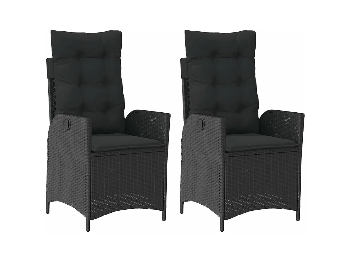 Chaises inclinables de jardin lot de 2 et coussins noir rotin