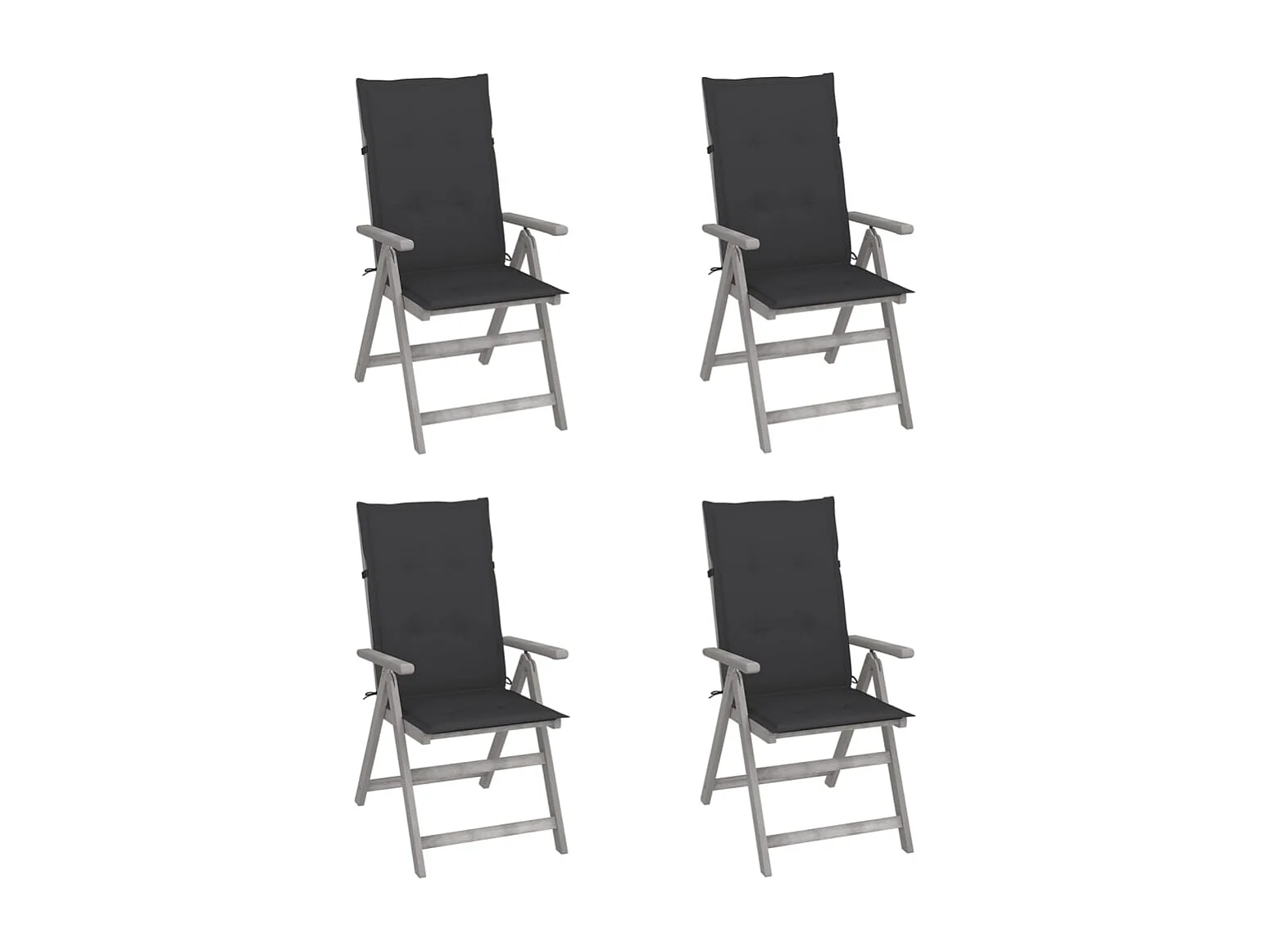Chaises inclinables de jardin lot de 4 et coussins Bois acacia