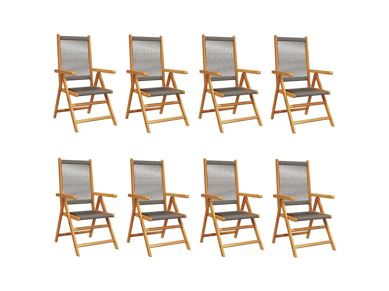 Chaises inclinables de jardin lot de 8 gris rotin bois massif