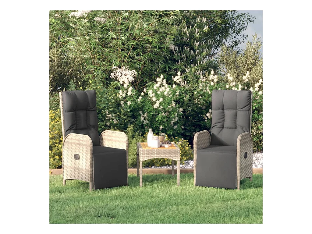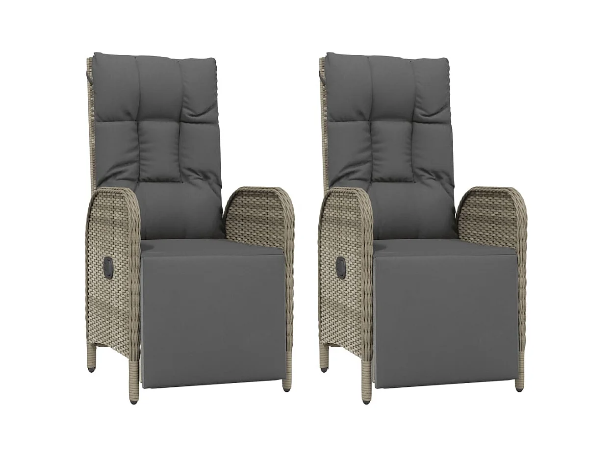 Chaises inclinables de jardin lot de 2 et coussins gris rotin