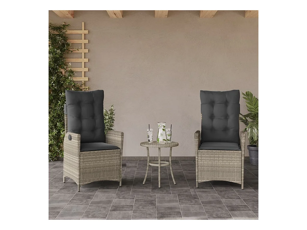 Chaises inclinables de jardin lot de 2 et coussins gris rotin