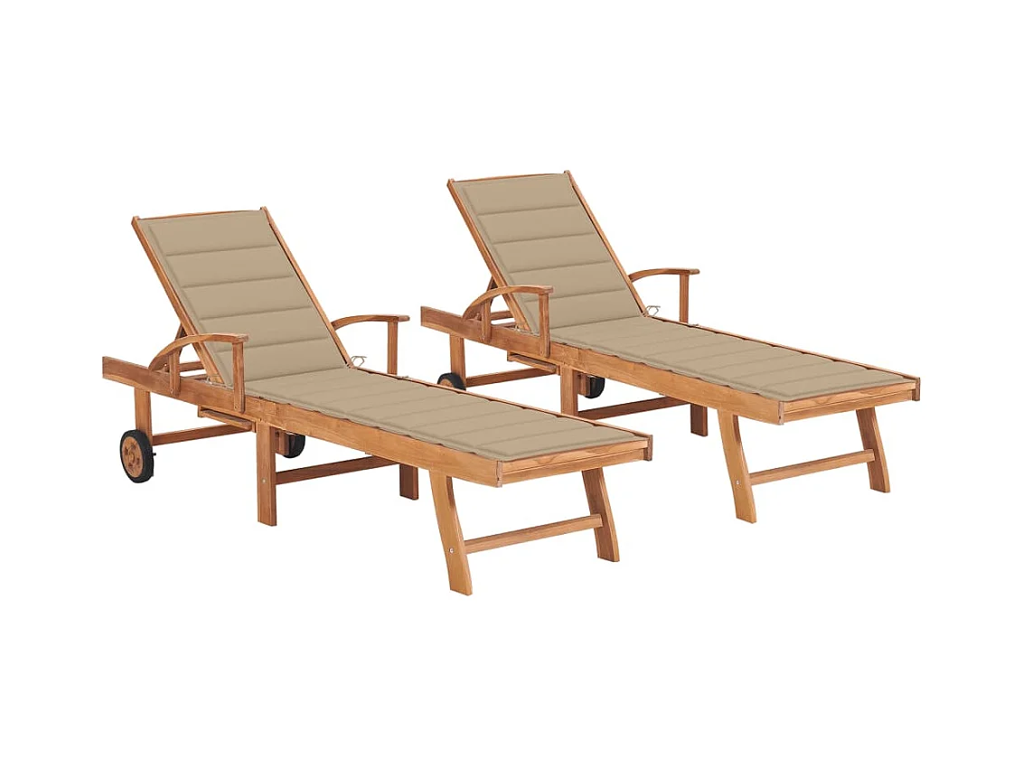 Chaises longues lot de 2 avec coussin beige Bois de teck solide