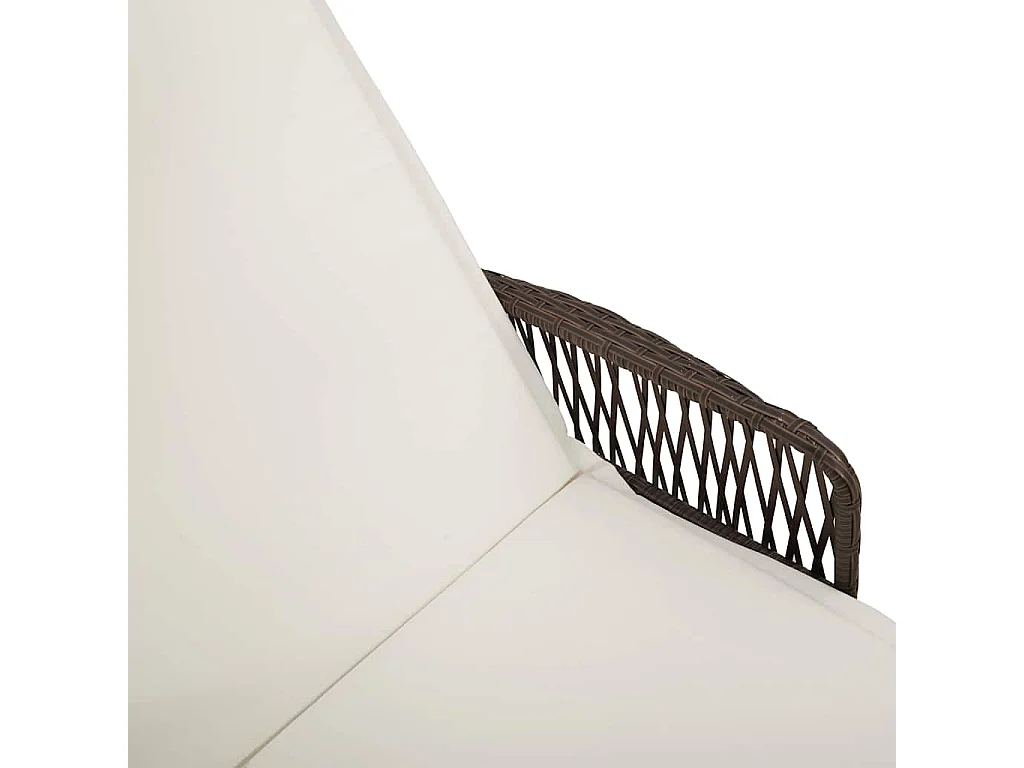 Chaises longues 2 pcs avec coussins et table Marron en poly rattan.