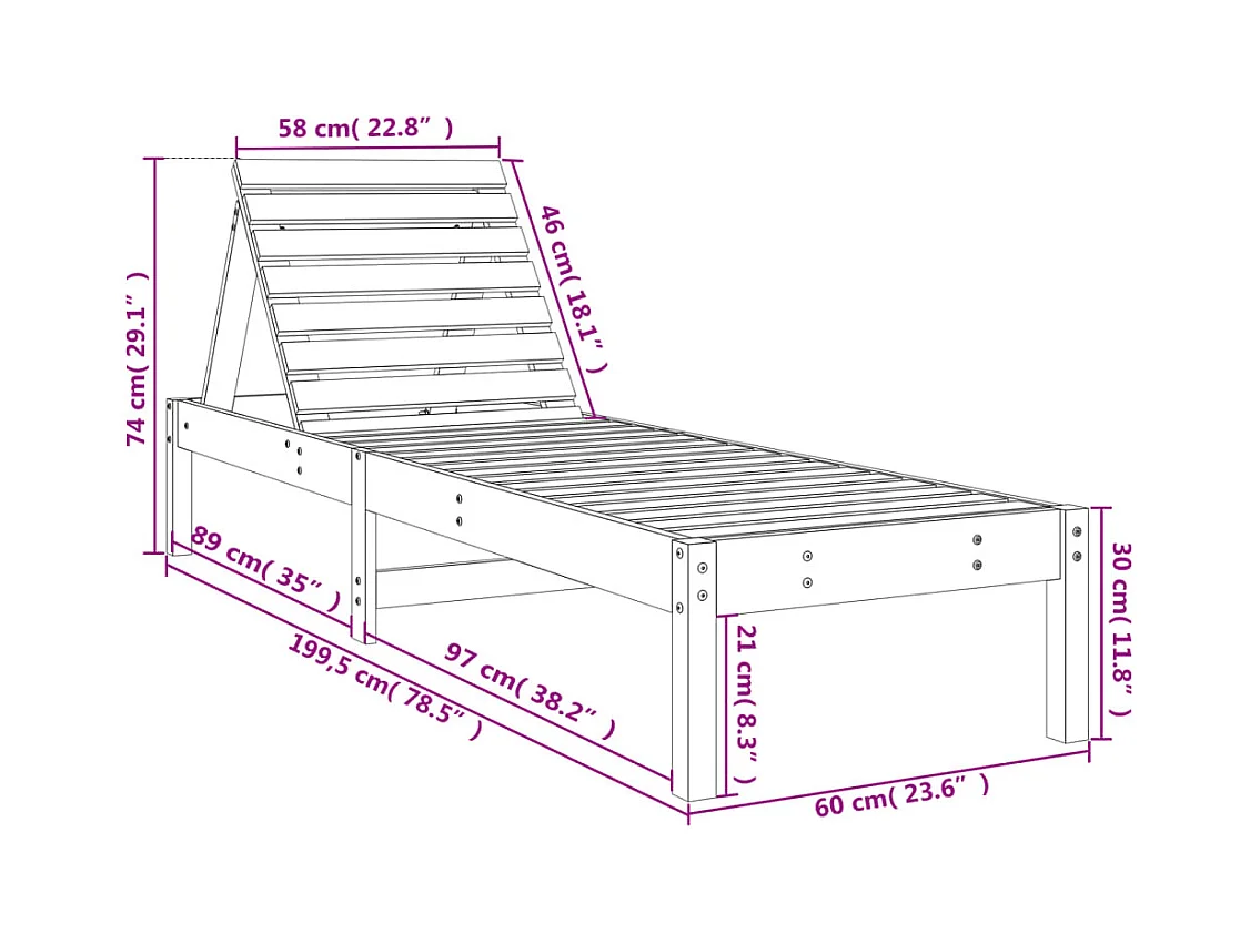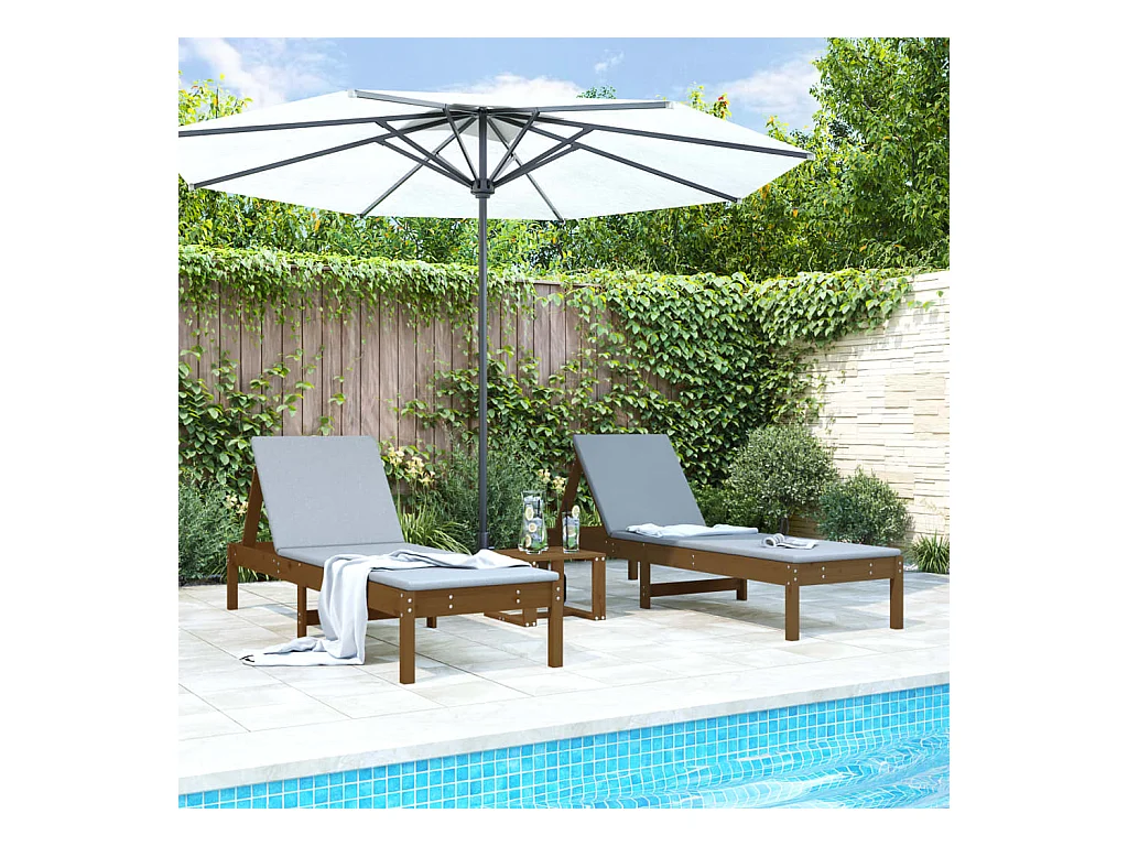 Chaises longues lot de 2 199,5x60x74 cm bois massif de pin