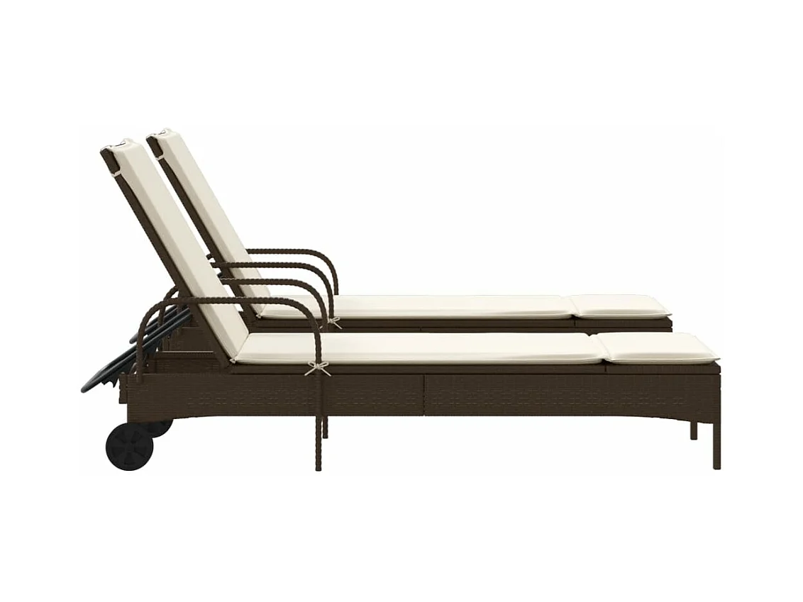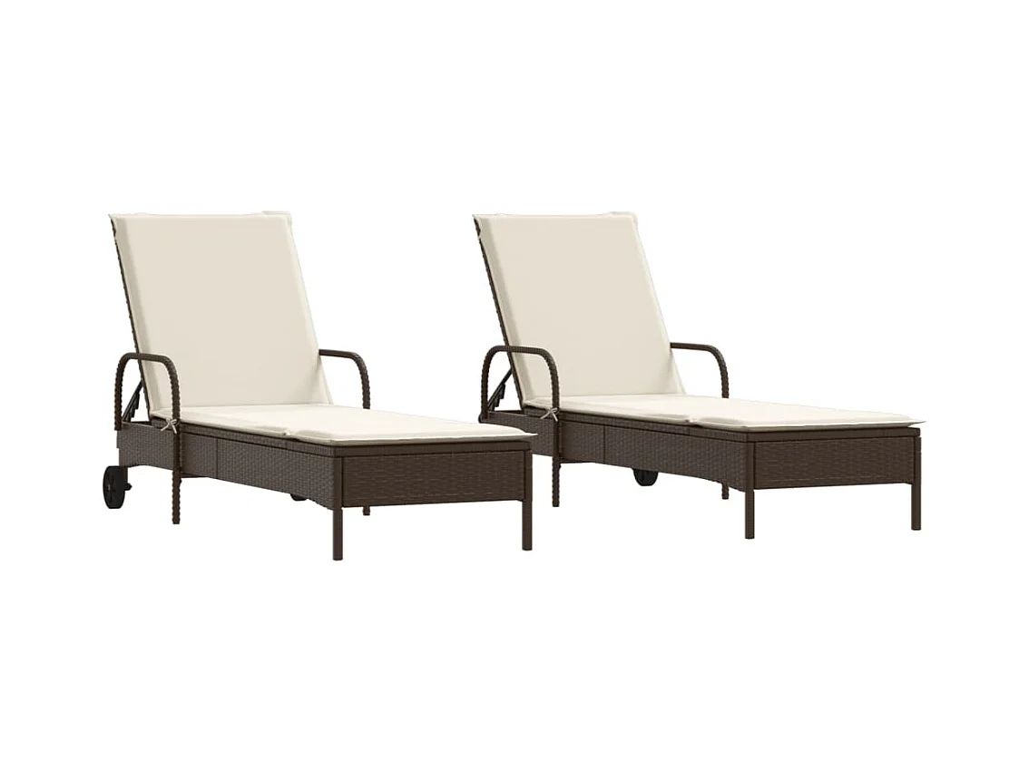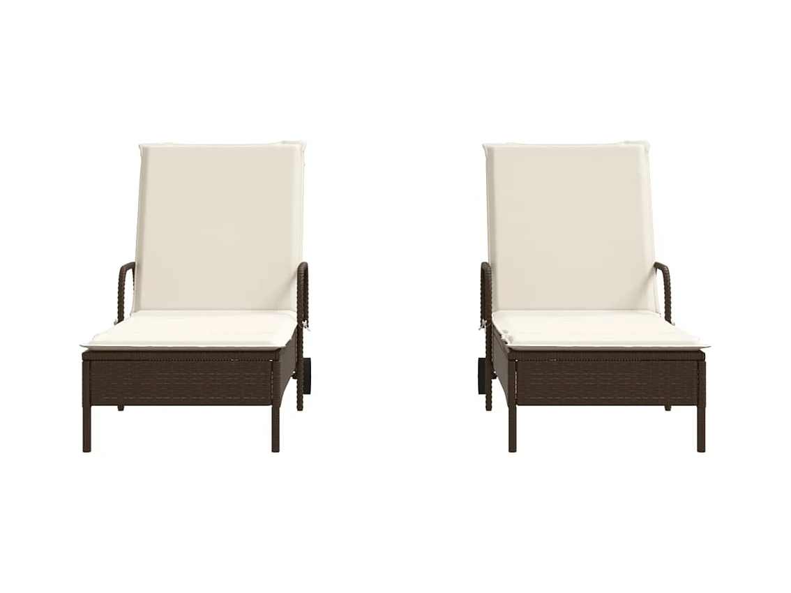 Chaises longues avec coussins lot de 2 marron résine tressée
