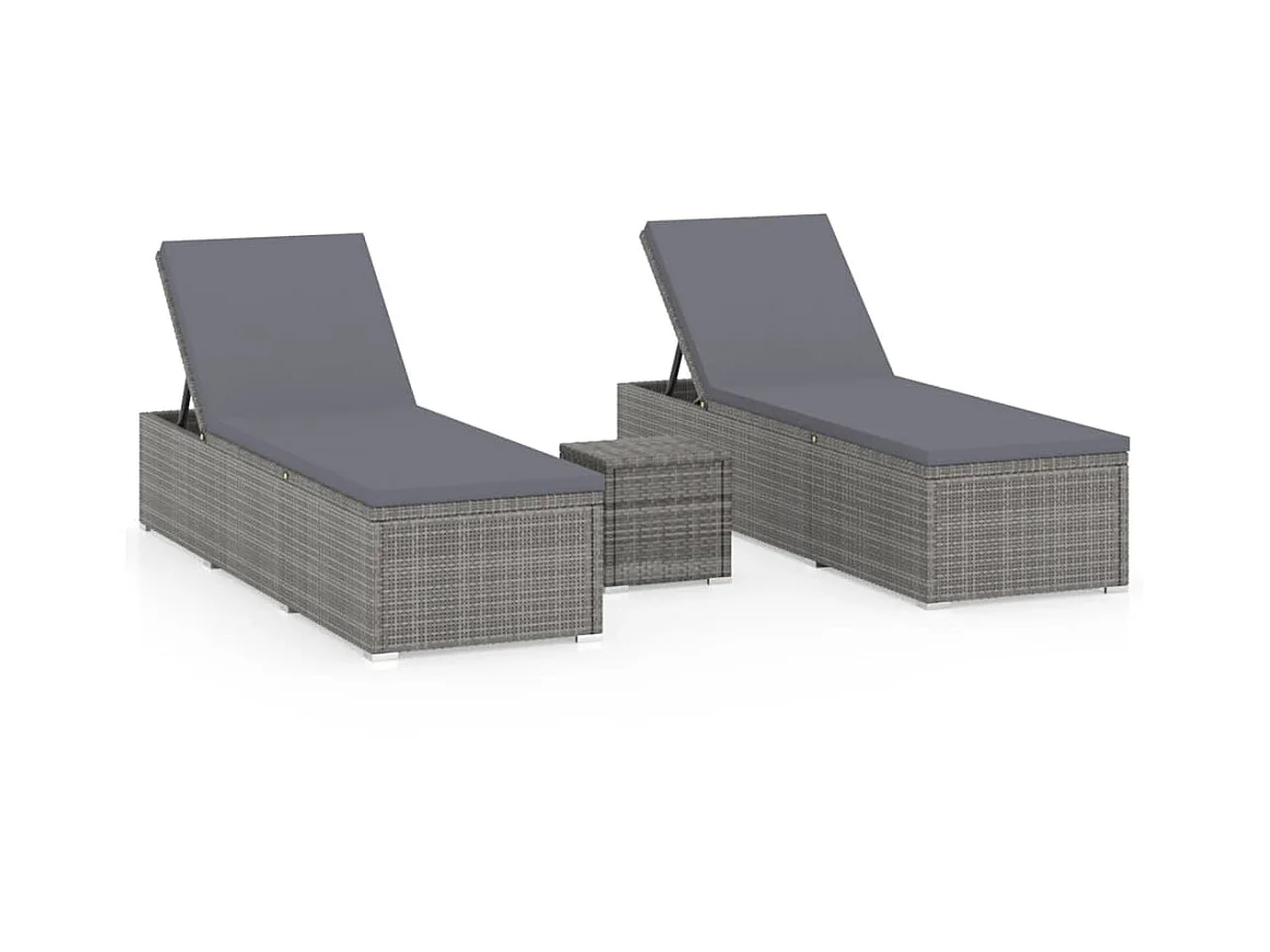 Chaises longues de jardin table à thé 3 pcs Résine tressée Gris