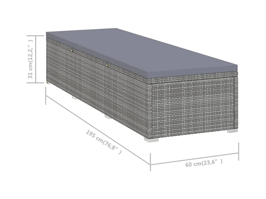 Chaise longue avec coussin gris 201x55x62 cm résine tressée