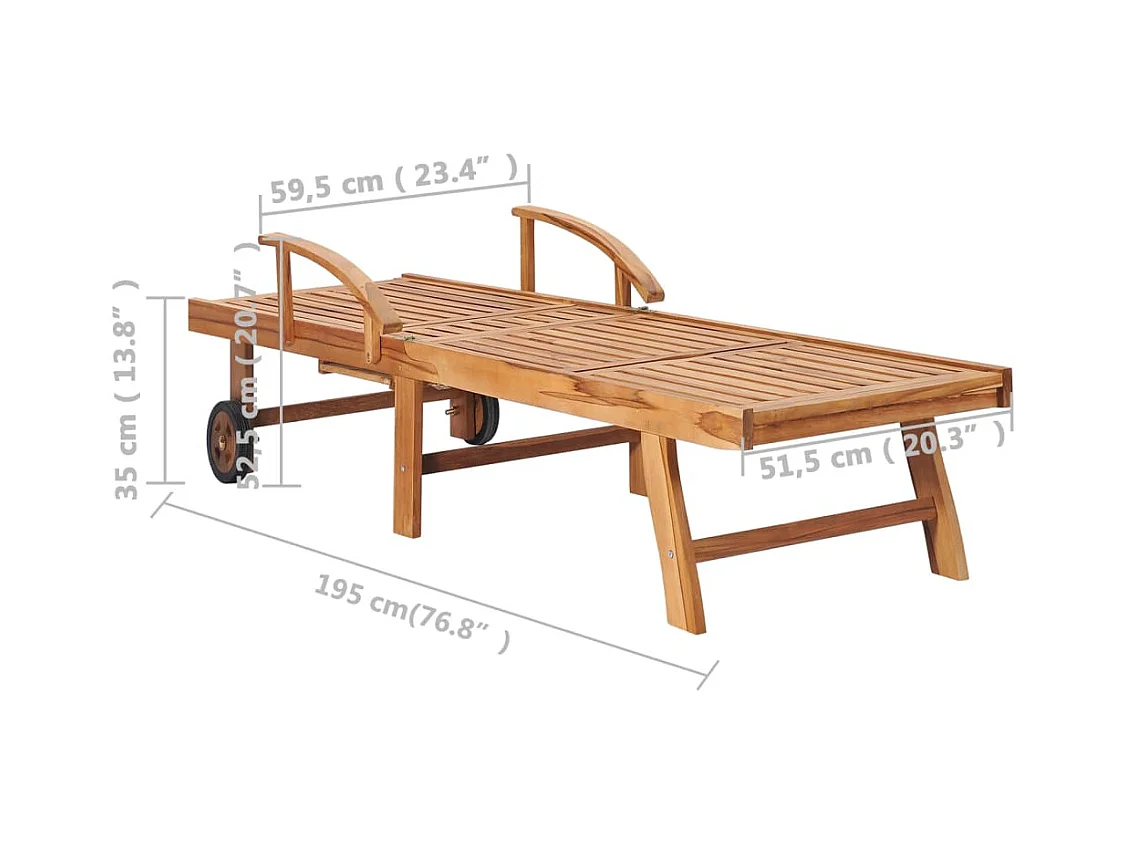 Chaise longue avec table et coussin Bois de teck solide