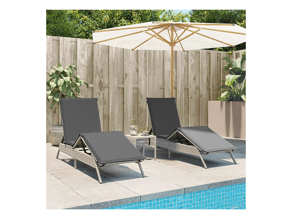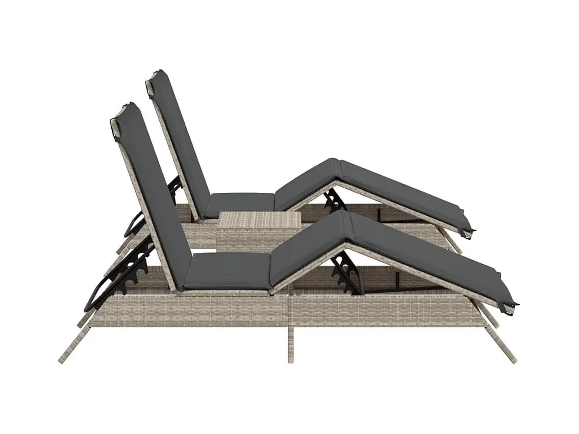 Chaises longues lot de 2 avec table gris clair résine tressée