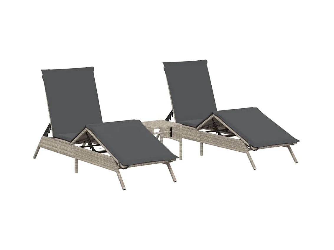Ensemble de chaises longues avec coussins 3pcs gris clair rotin