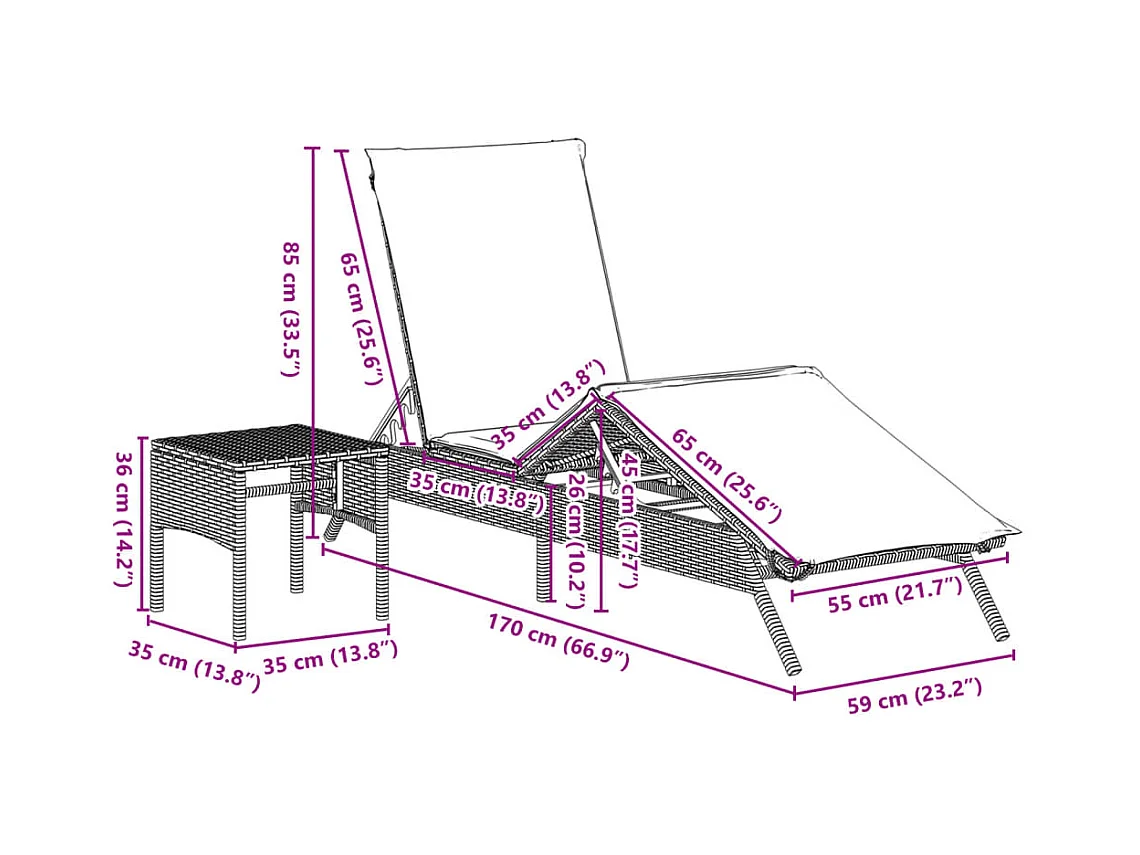 Lot de 2 Bains de soleil avec table Textilène et acier FR30660
