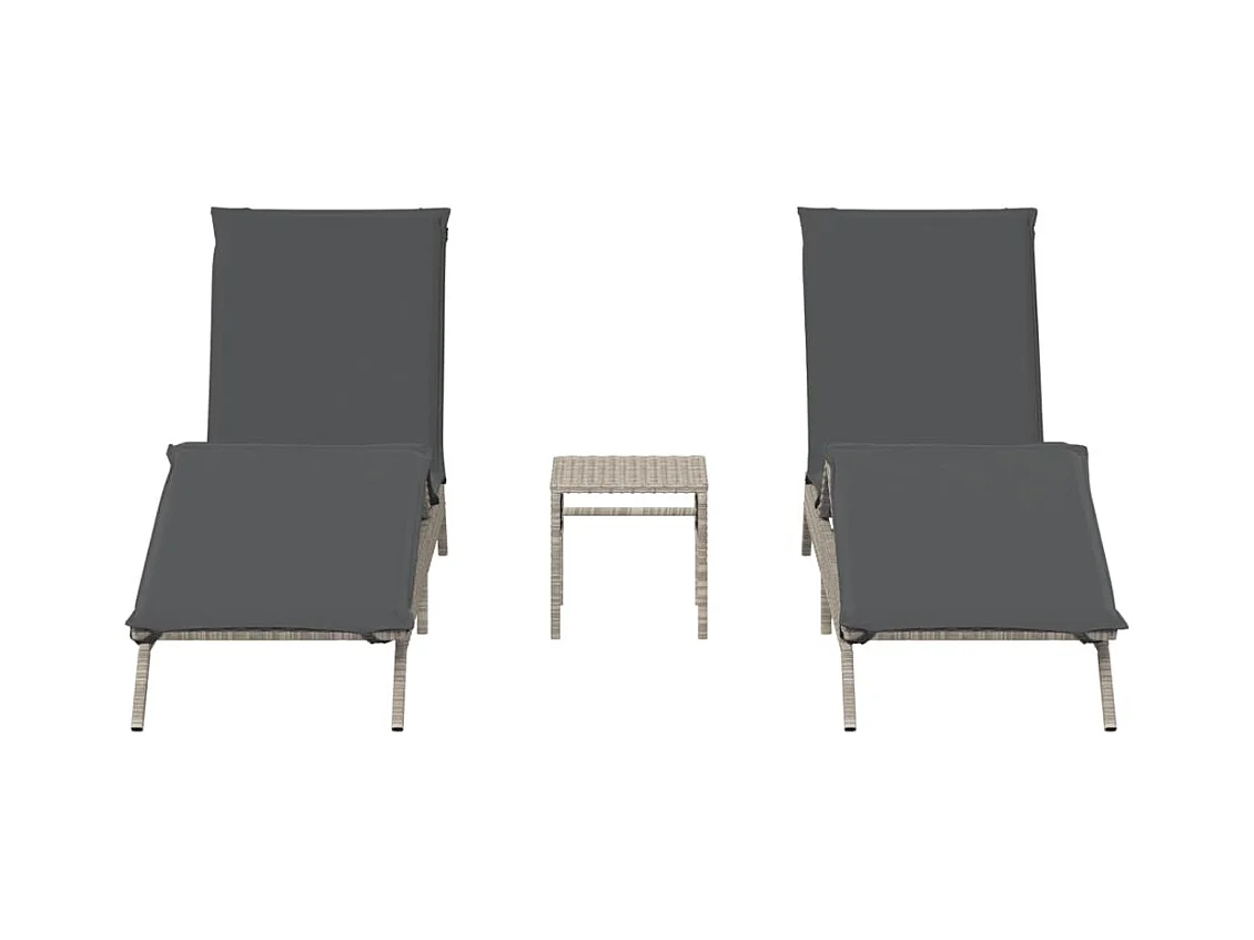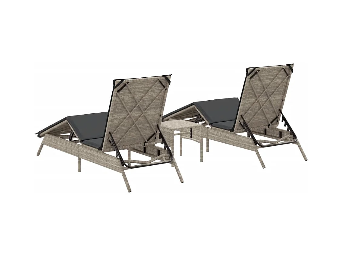 Ensemble de chaises longues avec coussins 3 pcs gris poly rotin