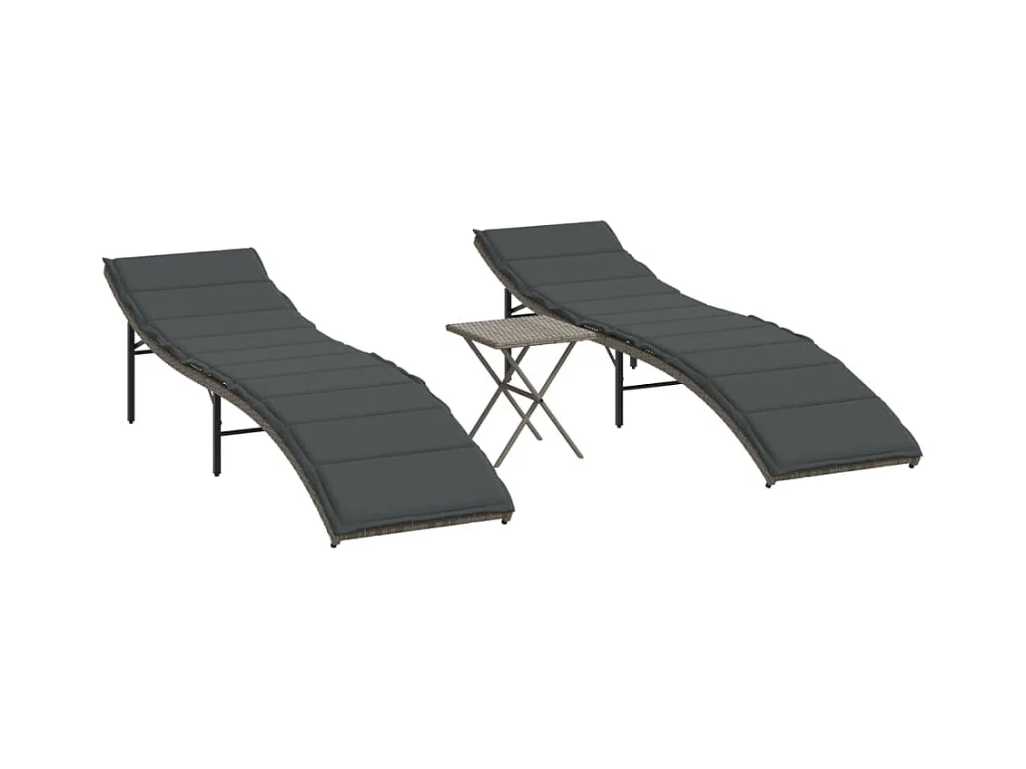 Chaises longues lot de 2 avec table gris clair résine tressée