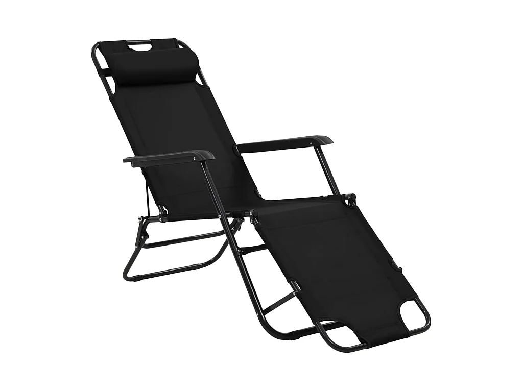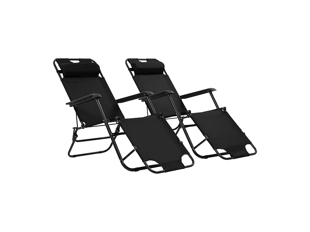 Chaises longues pliables 2 pcs avec repose-pied Acier Noir
