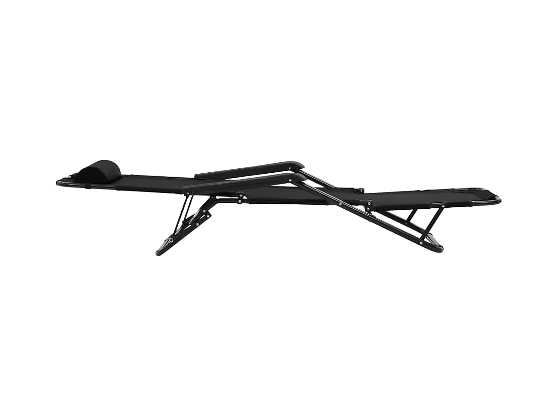 Chaises longues 2 pcs avec table Acier et textilène Noir