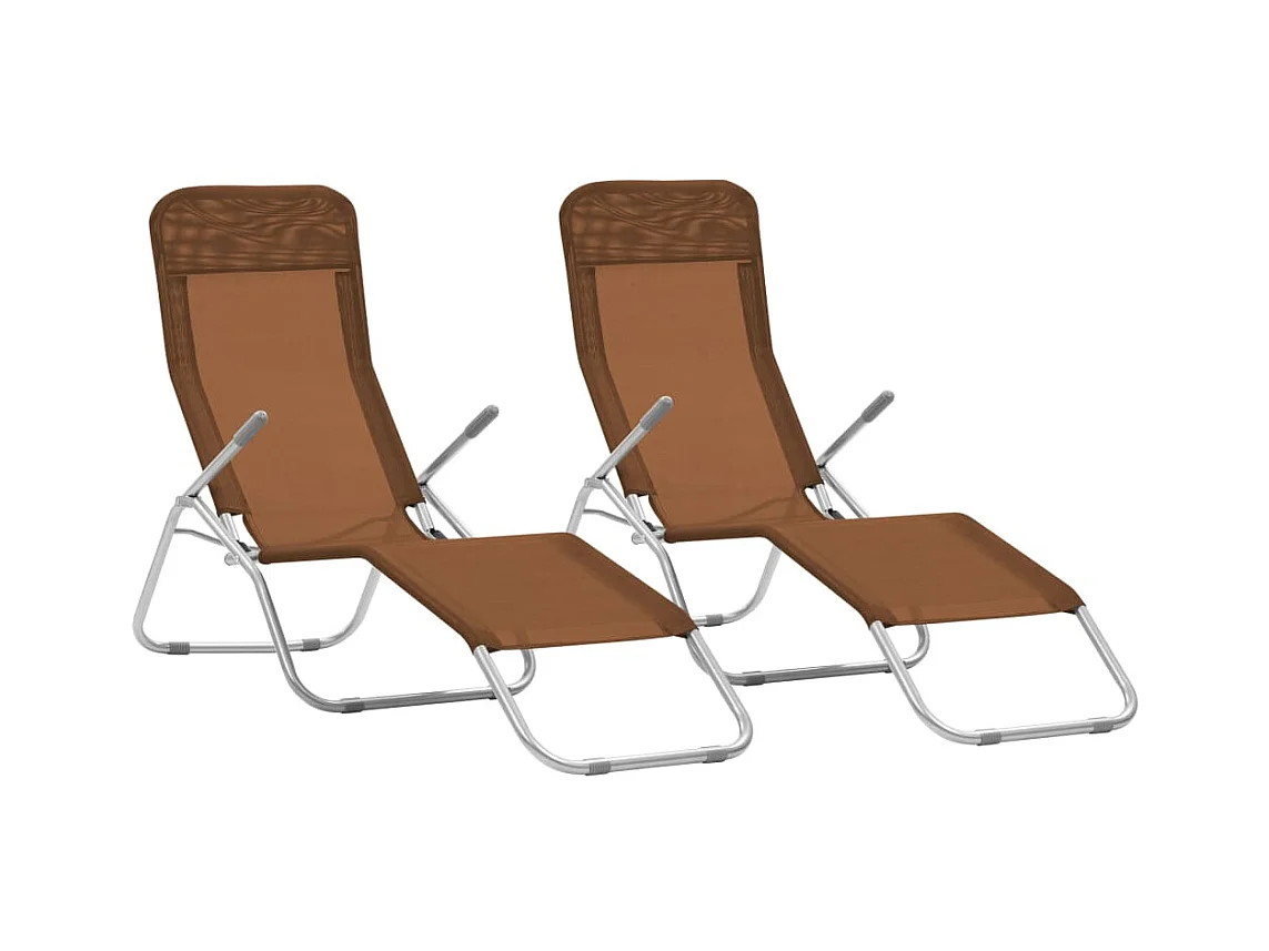 Chaises longues pliables 2 pcs Textilène Taupe