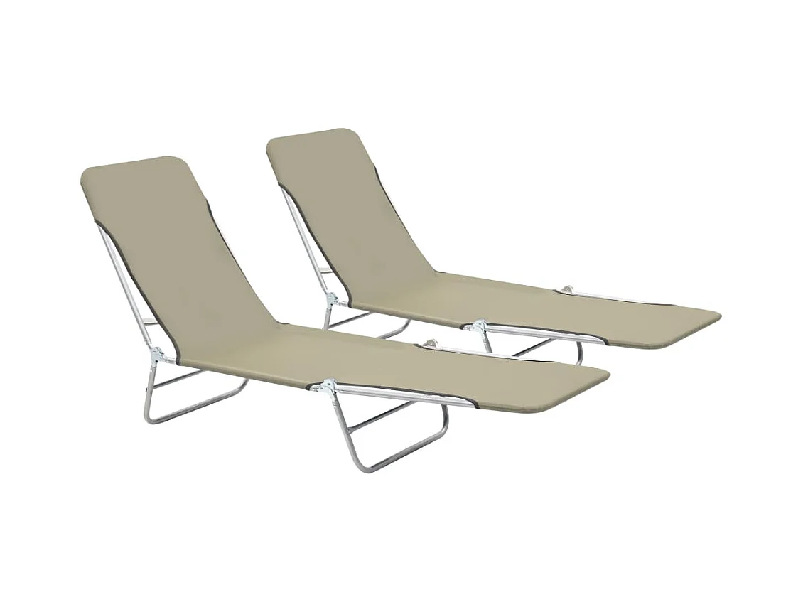 Chaises longues pliables lot de 2 Acier et tissu Taupe