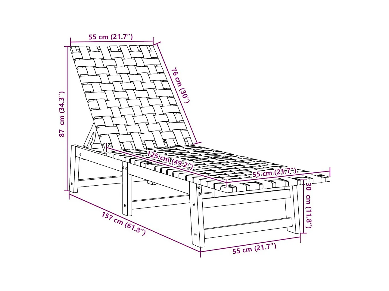 Chaise longue de jardin avec table et coussin Bois d'acacia