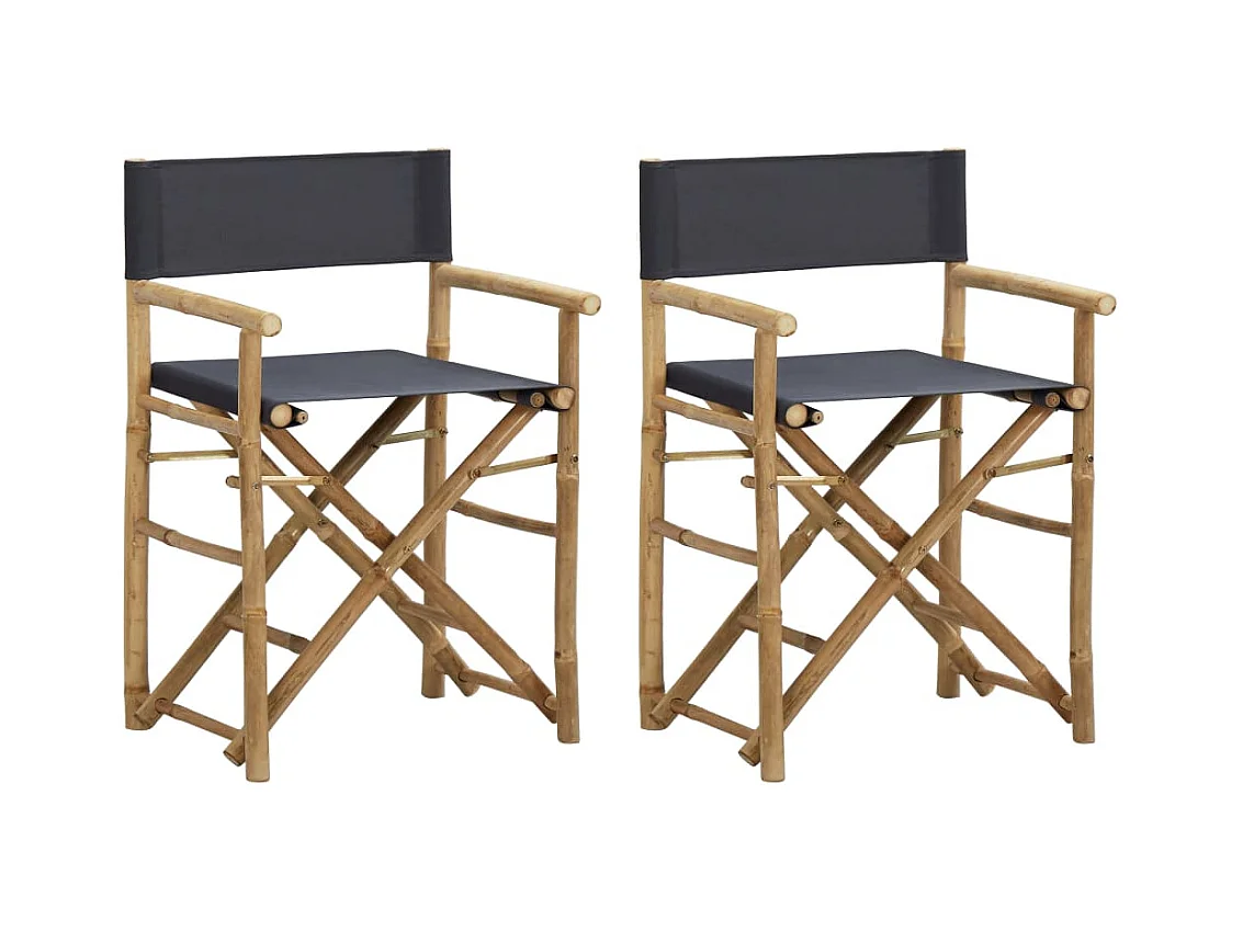 Chaises pliables de directeur 2 pièces Gris foncé Bambou et tissu