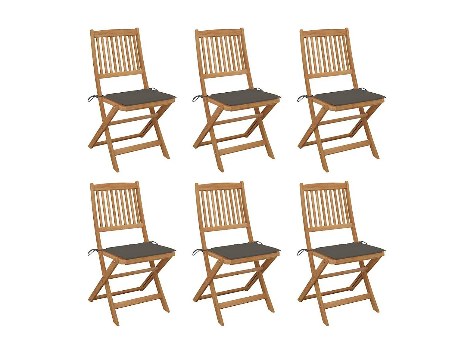 Chaises pliables de jardin lot de 6 avec coussins Bois d'acacia