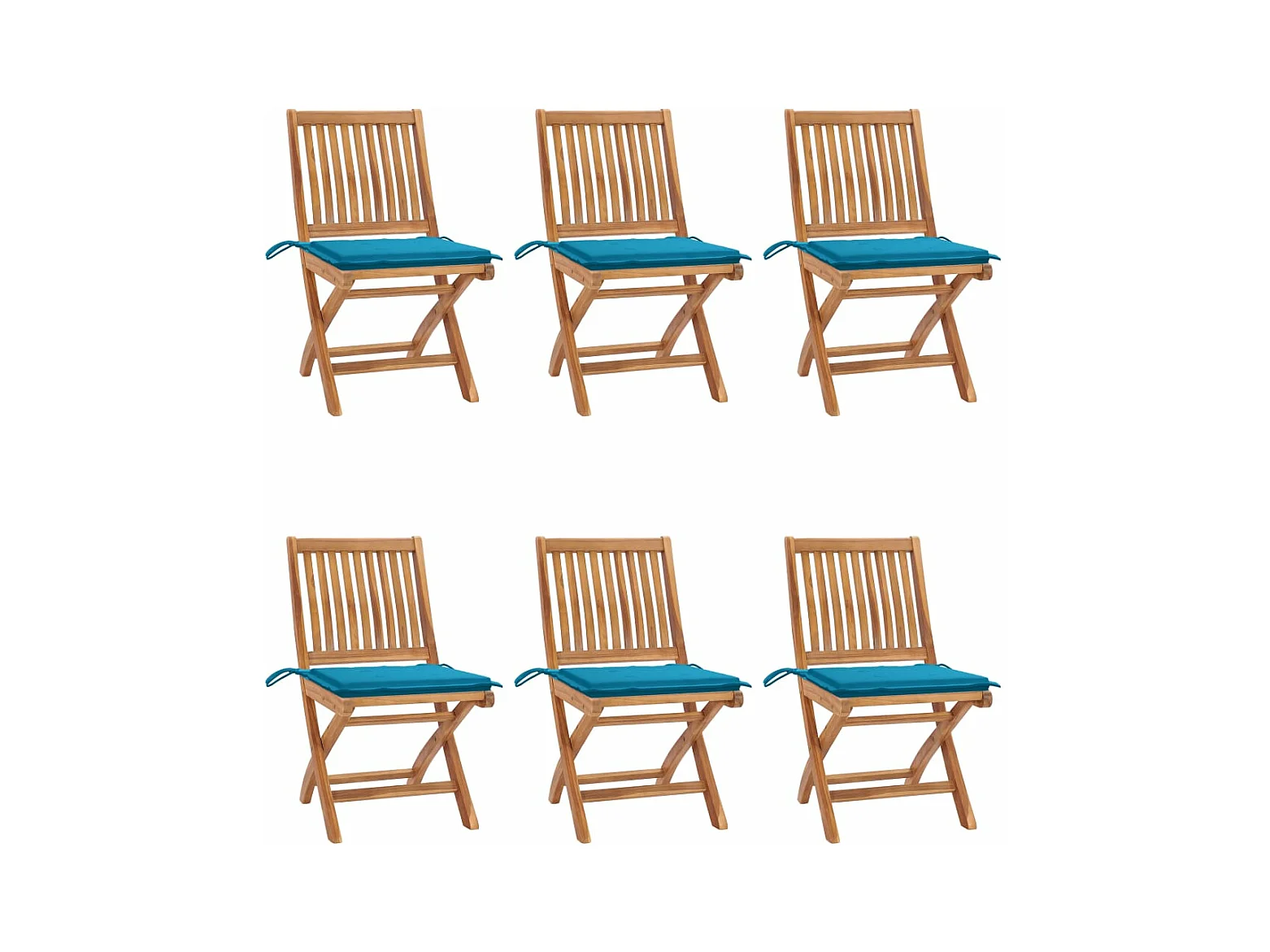 Chaises pliables de jardin avec coussins 6 pièces Bois de teck