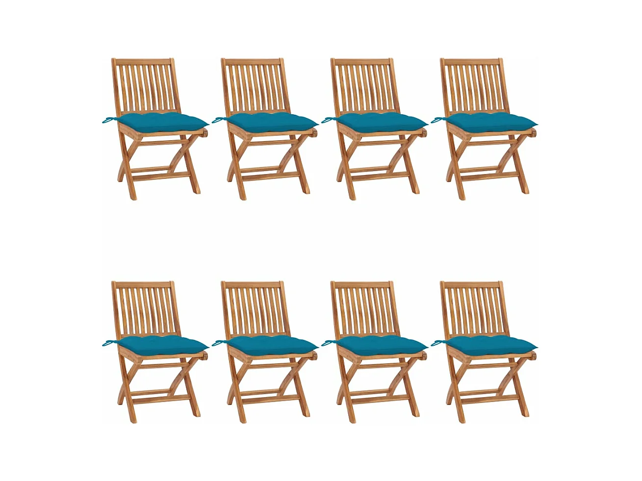 Chaises de jardin avec coussins bleu clair 8 pièces Teck massif