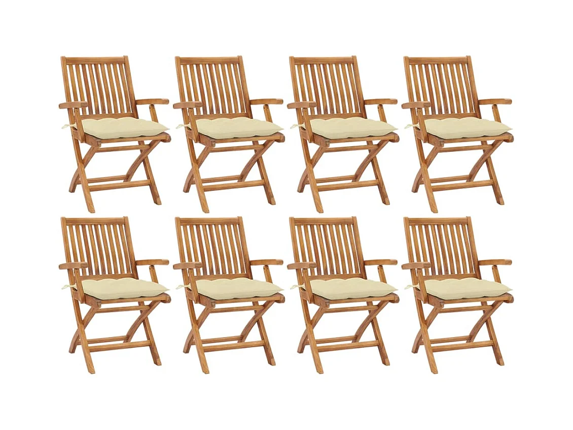 Chaises pliables de jardin avec coussins lot de 8 Teck solide