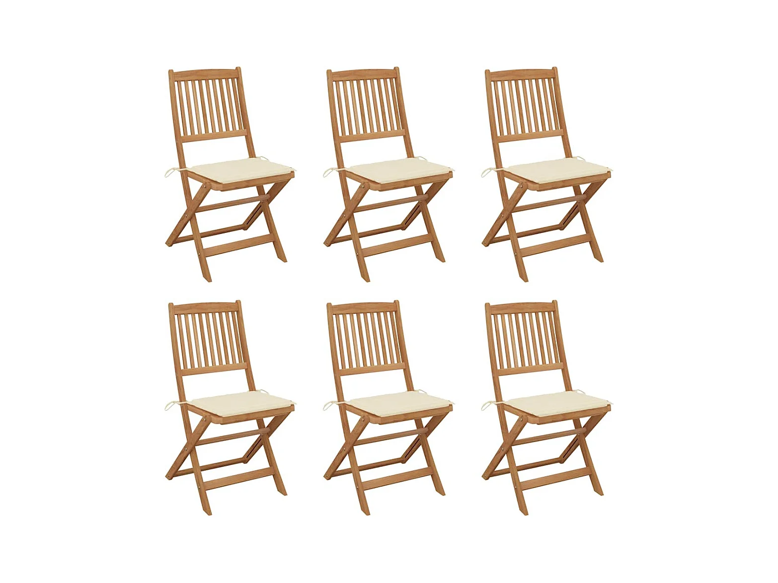 Chaises pliables de jardin lot de 6 avec coussins Bois d'acacia